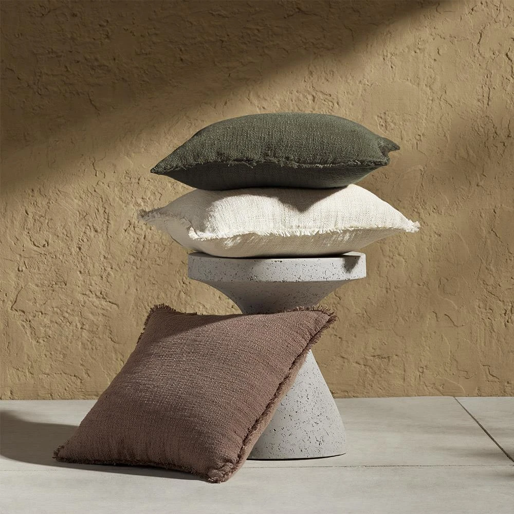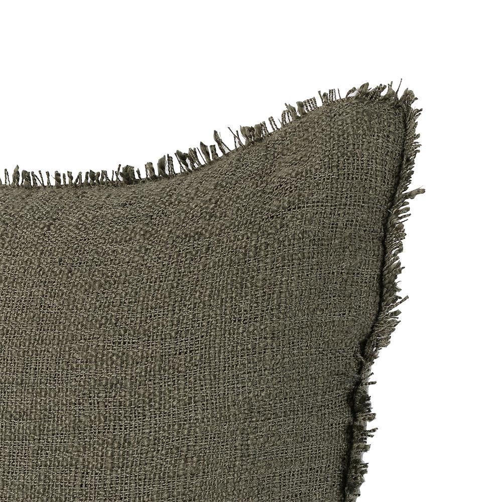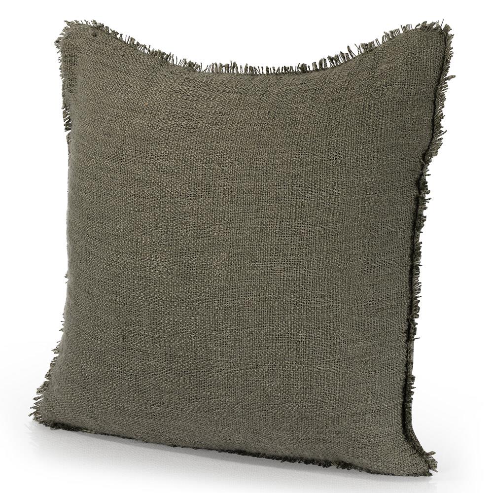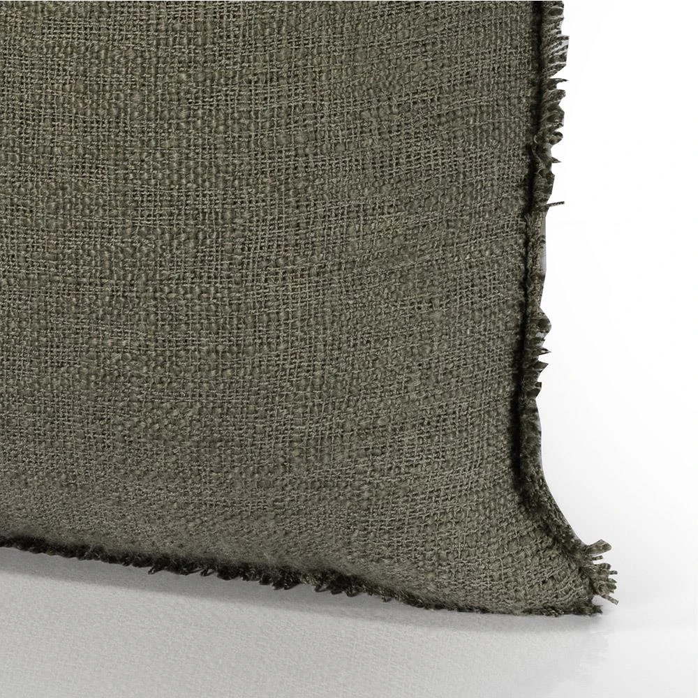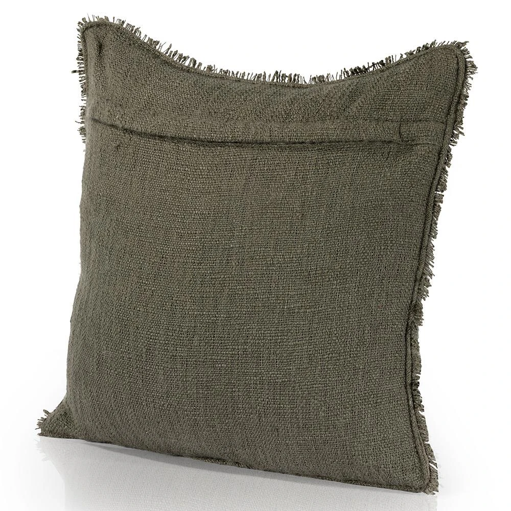 Thara Coastal Beach Olive Green Fringed Indoor Outdoor Throw Pillow - 20x20
