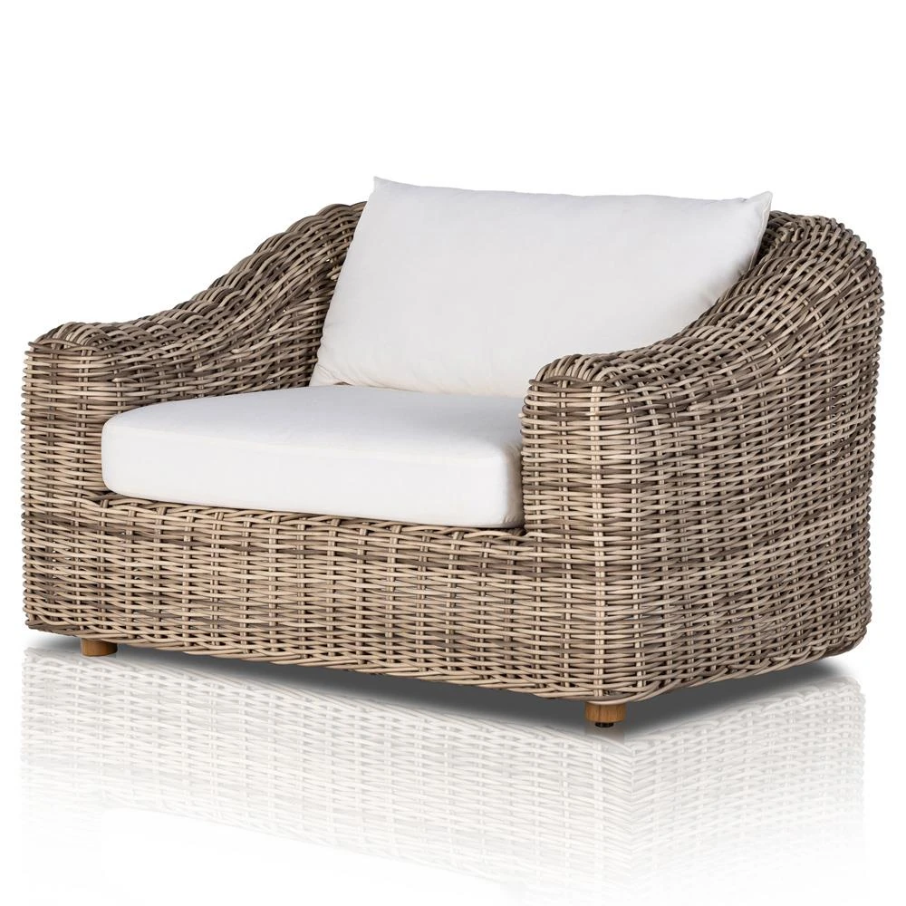 • Nikka Coastal Beach Stained Brown Wicker Outdoor Lounge Chair|Kathy Kuo Home