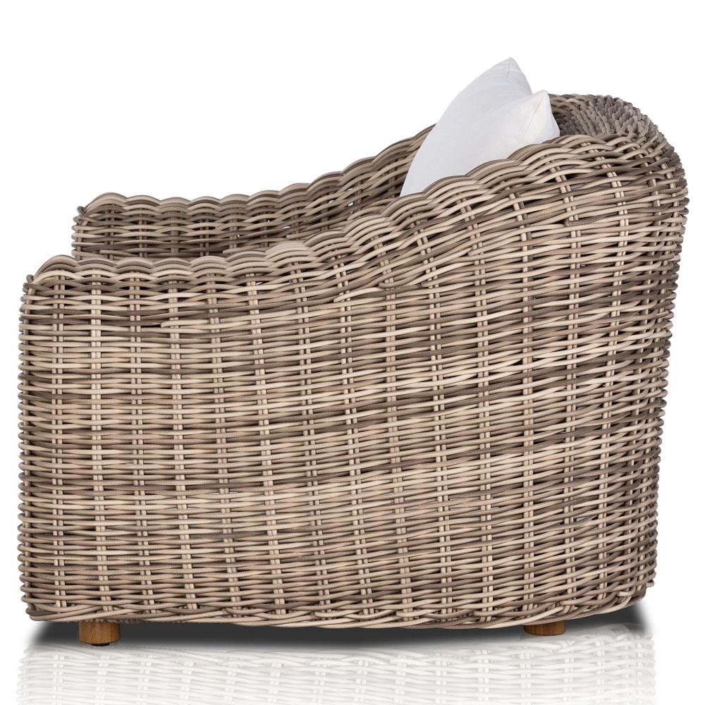 • Features a traditional heritage shape crafted from durable natural teak with a woven pattern, offering deep-seated comfort for the ultimate outdoor lounge