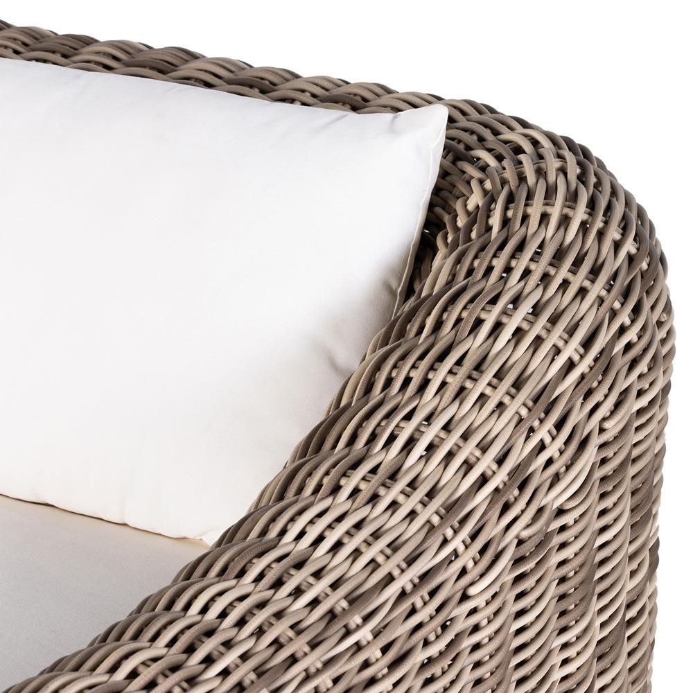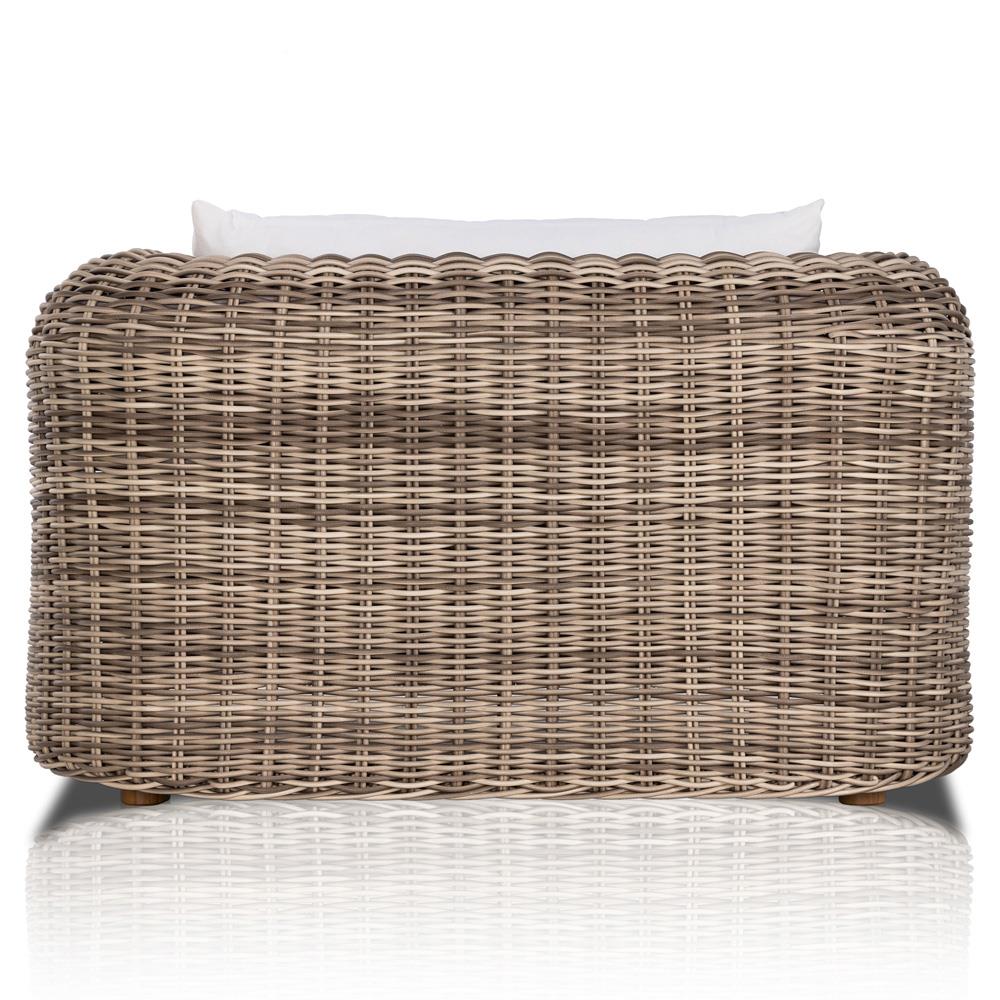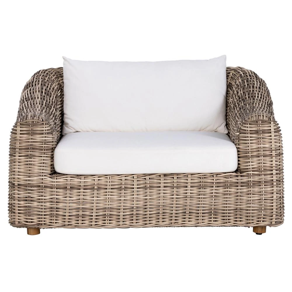 Celina Coastal Cream Upholstered Woven Wicker Charcoal Teak Outdoor Sofa - 106"