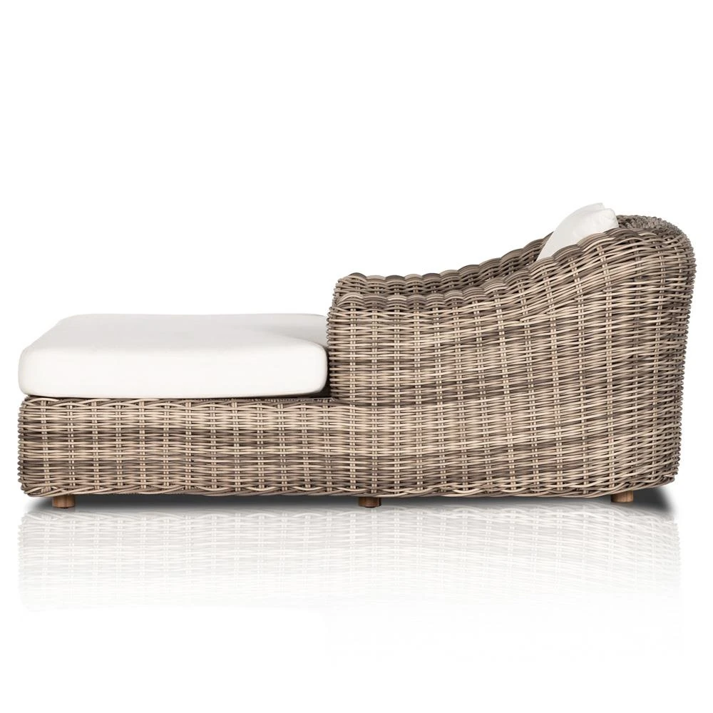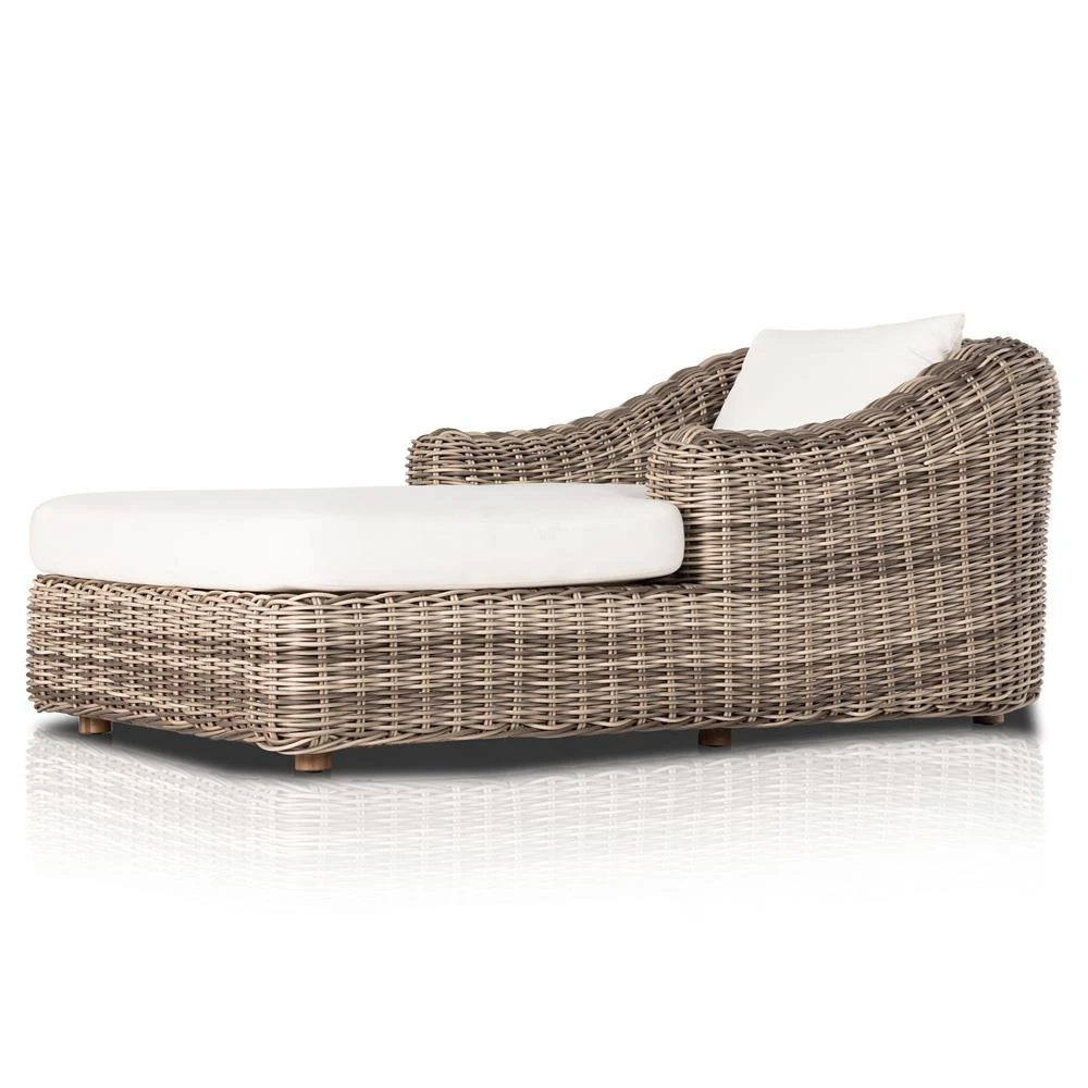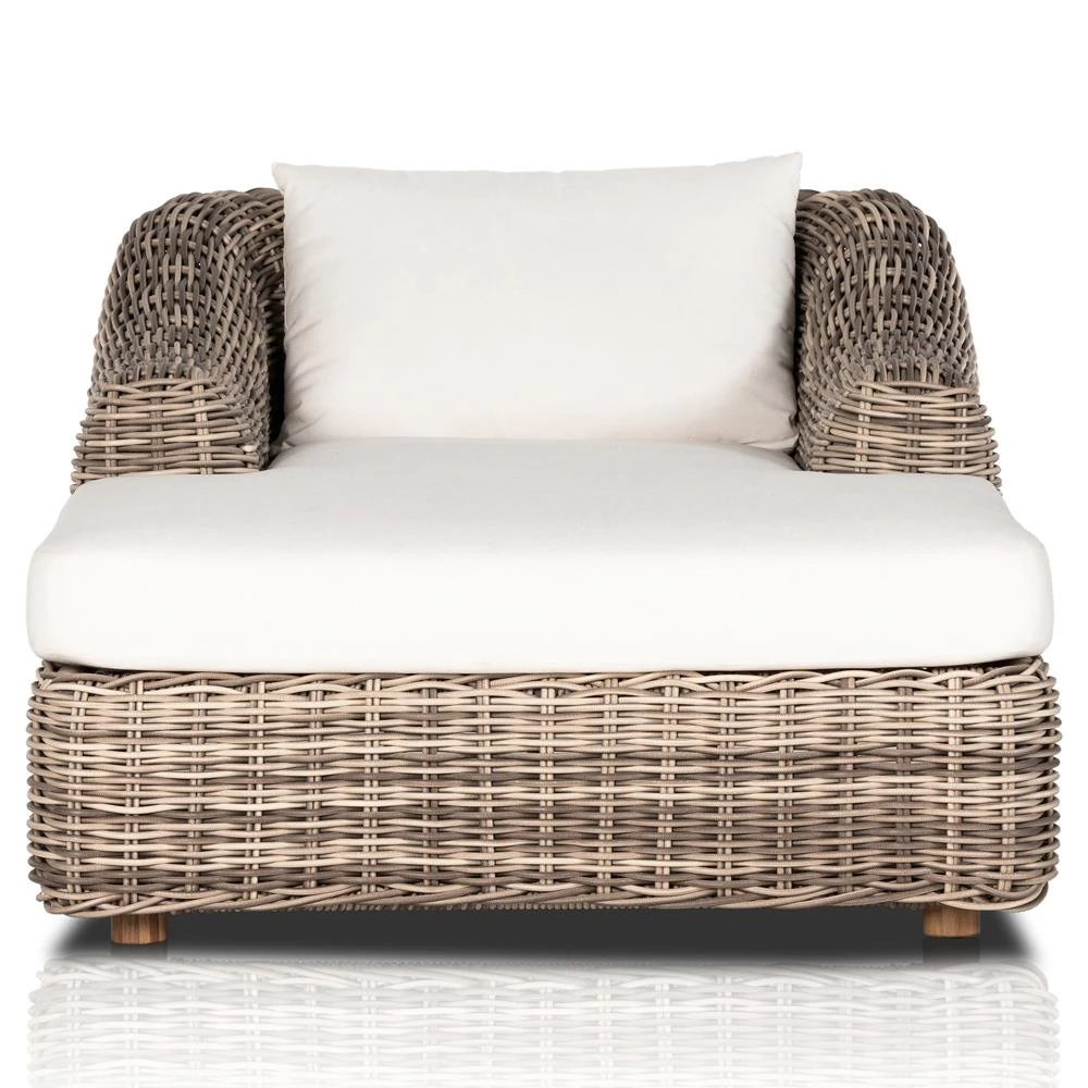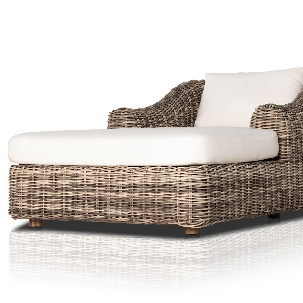 Rina Ellen Coastal White Upholstered Natural Rattan Outdoor Lounge Chaise