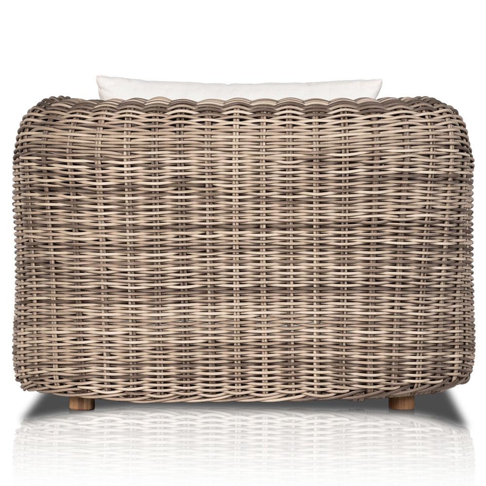 • Features a traditional heritage shape crafted from durable natural teak with a woven pattern, offering deep-seated comfort for the ultimate outdoor lounge