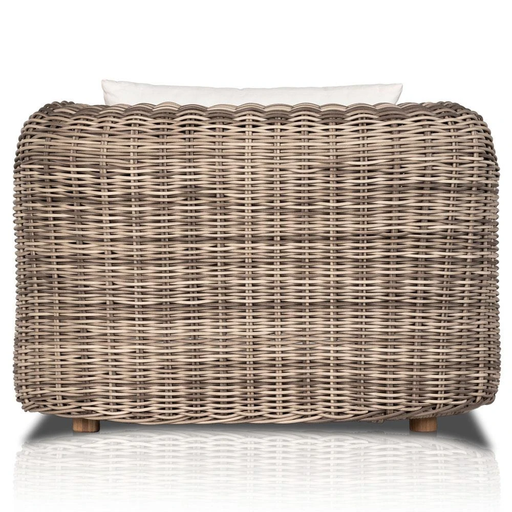 • Celina Coastal White Cushion Woven Wicker Natural Teak Wood Outdoor Sofa - 106"|Kathy Kuo Home