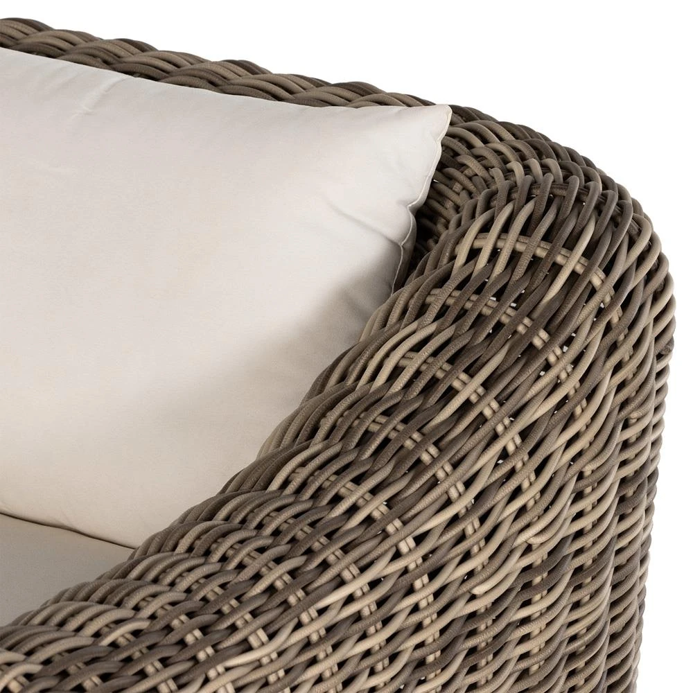 Celina Coastal Cream Upholstered Woven Wicker Charcoal Teak Outdoor Sofa - 106"