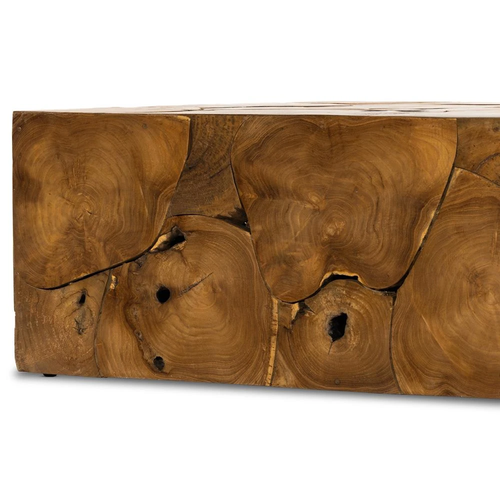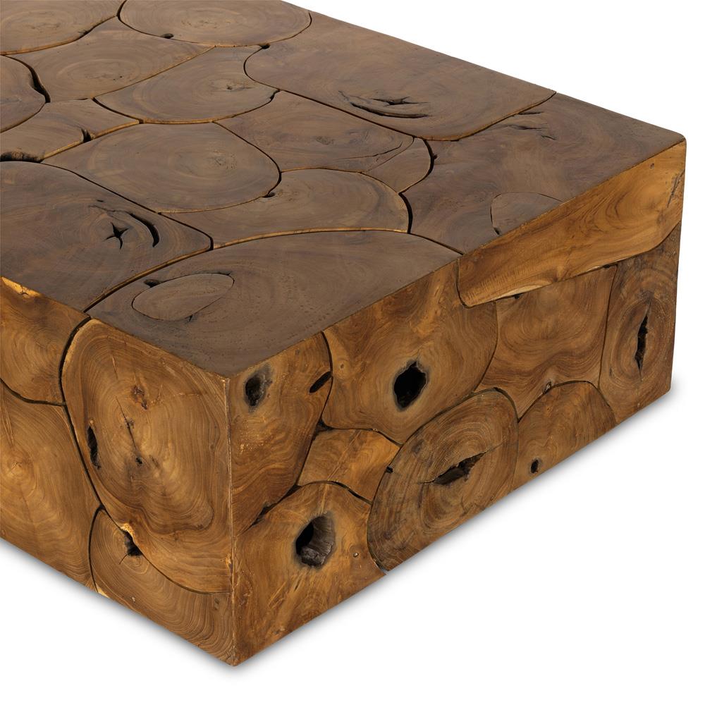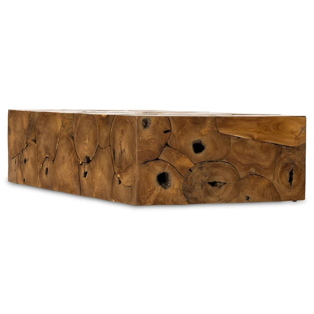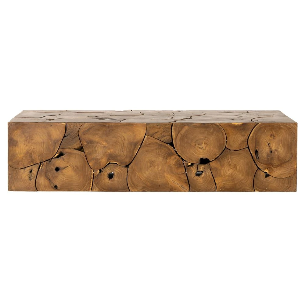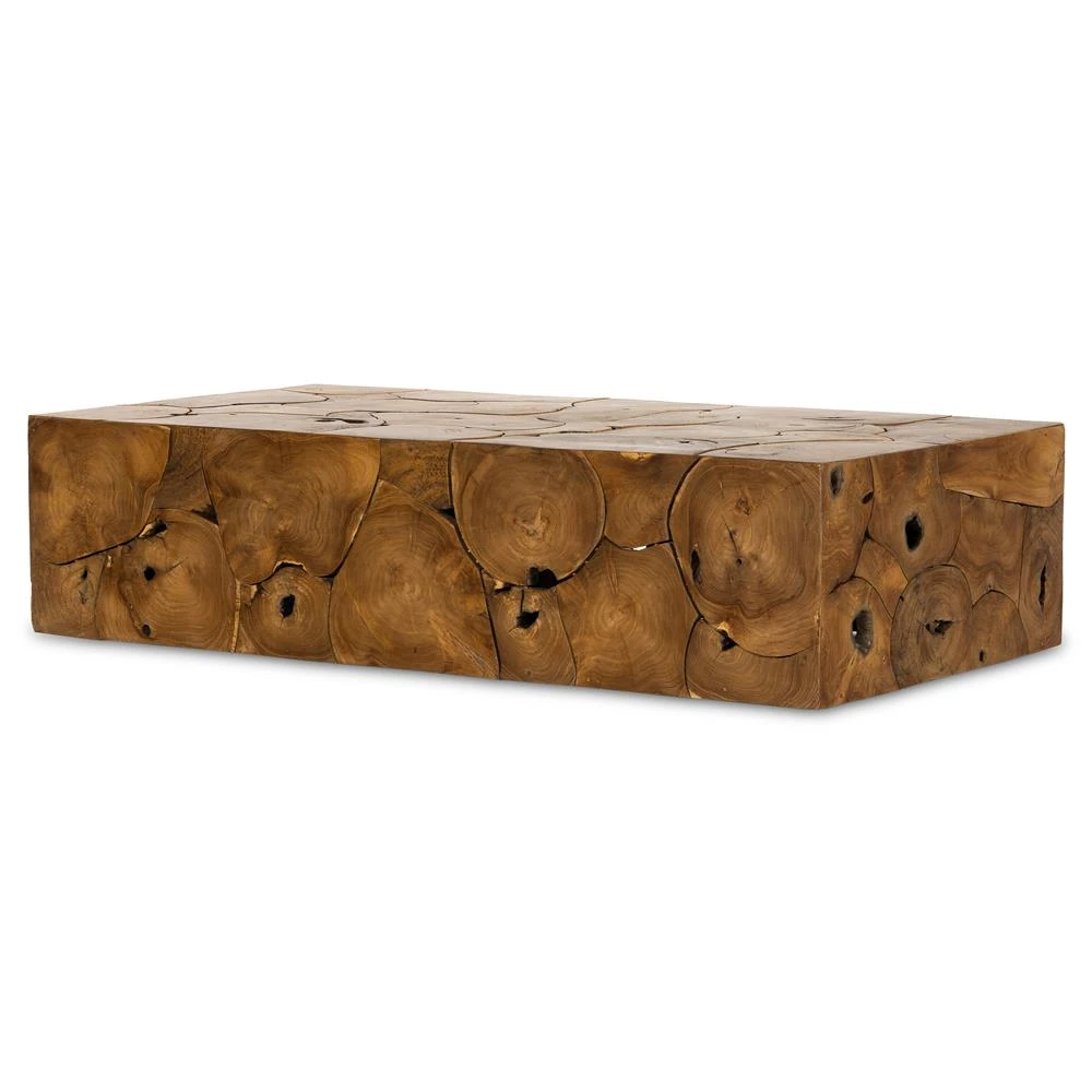 Thorn Mid Century Modern Natural Teak Rectangular Block Outdoor Coffee Table