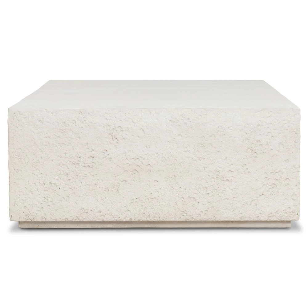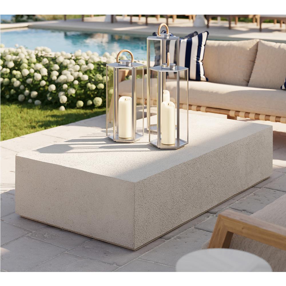 • Orkins Modern Classic Cream Marble Rectangular Block Outdoor Coffee Table|Kathy Kuo Home