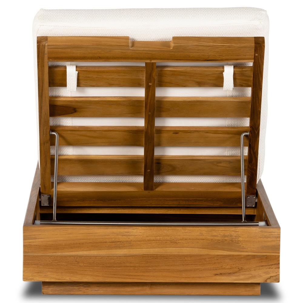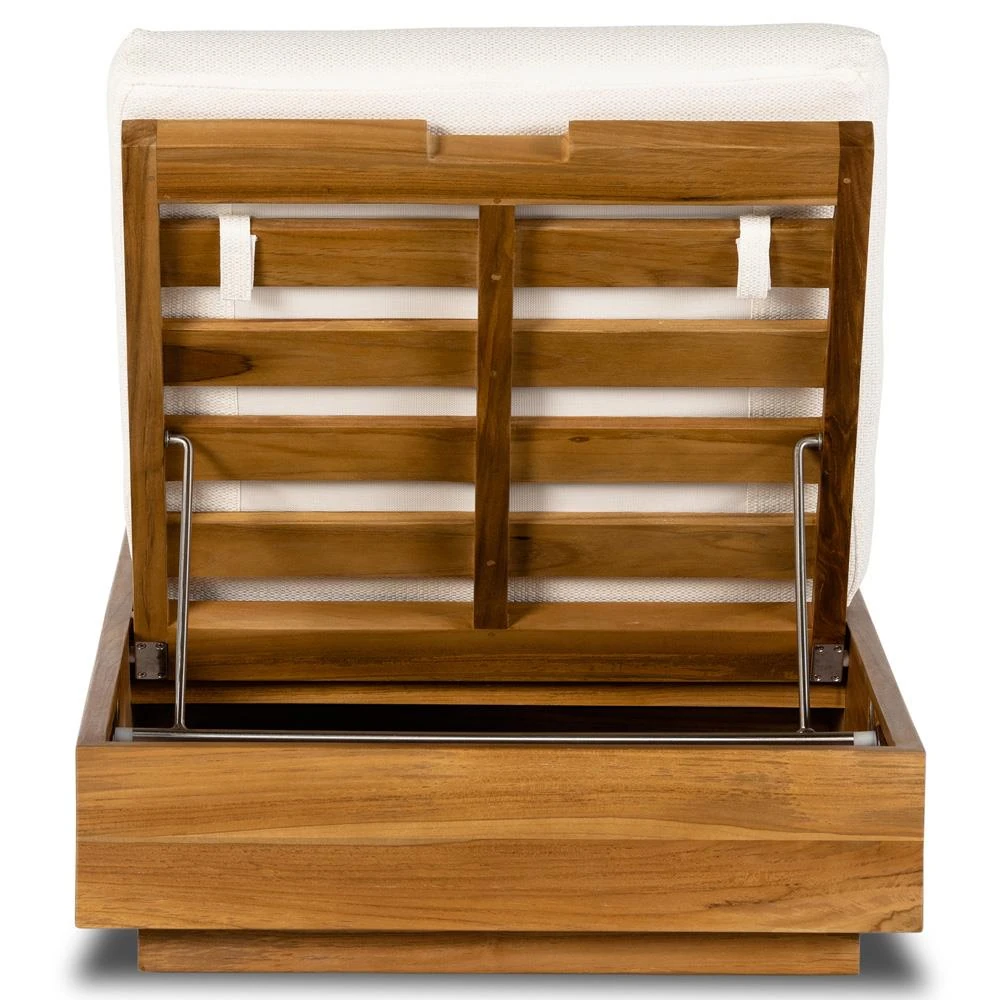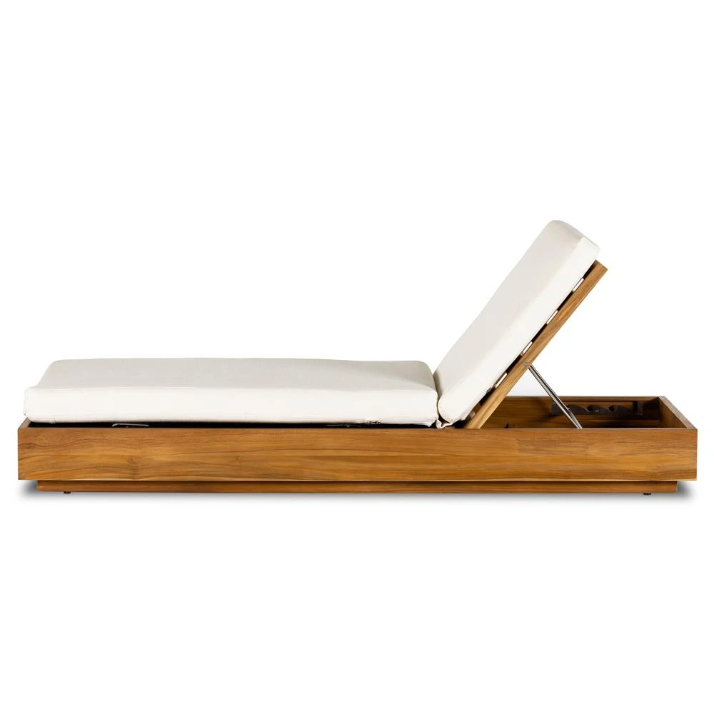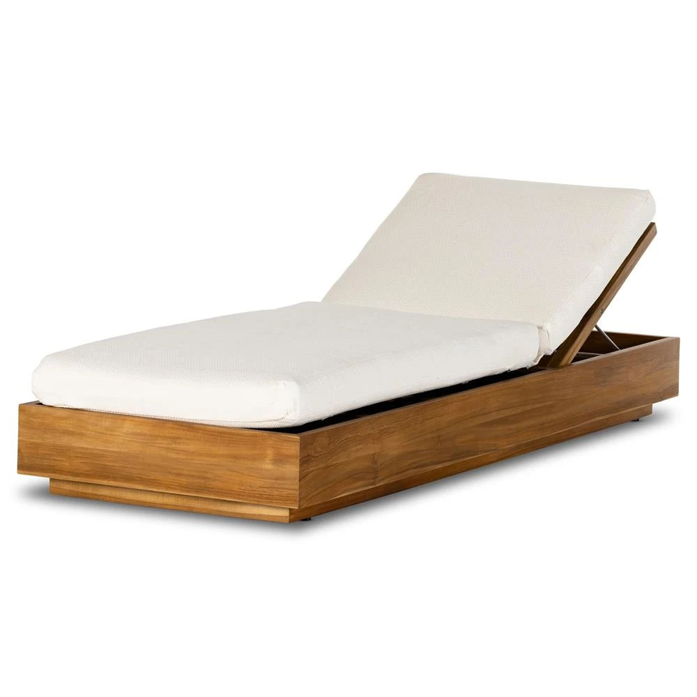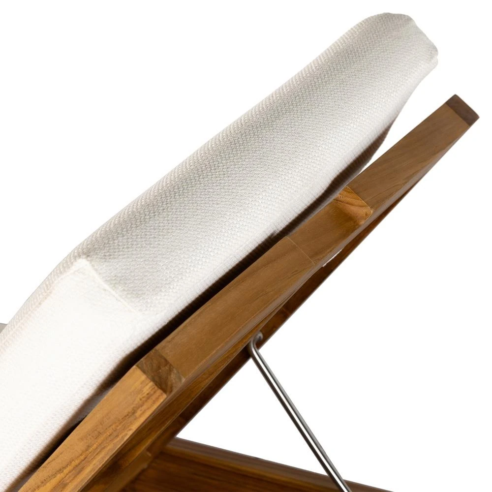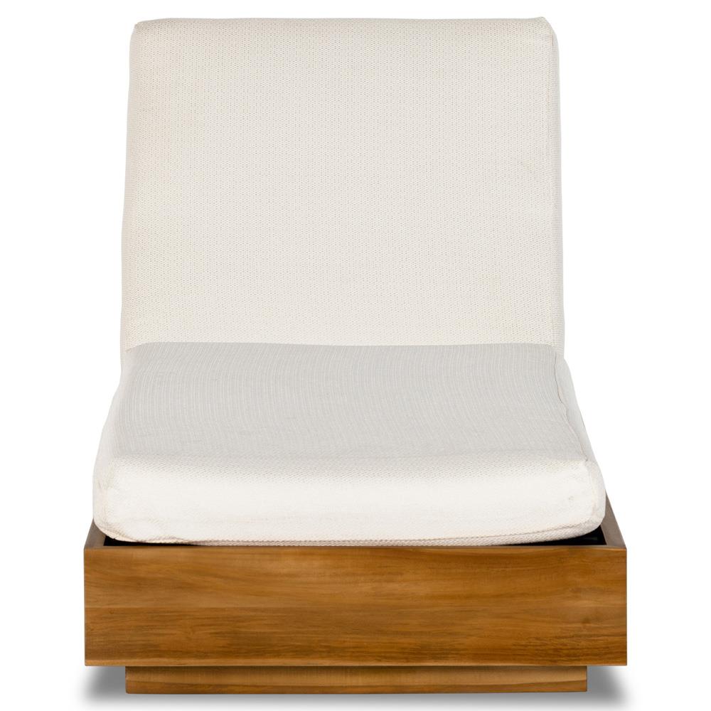Kisha Modern Classic White Upholstered Natural Teak Outdoor Chaise Lounge