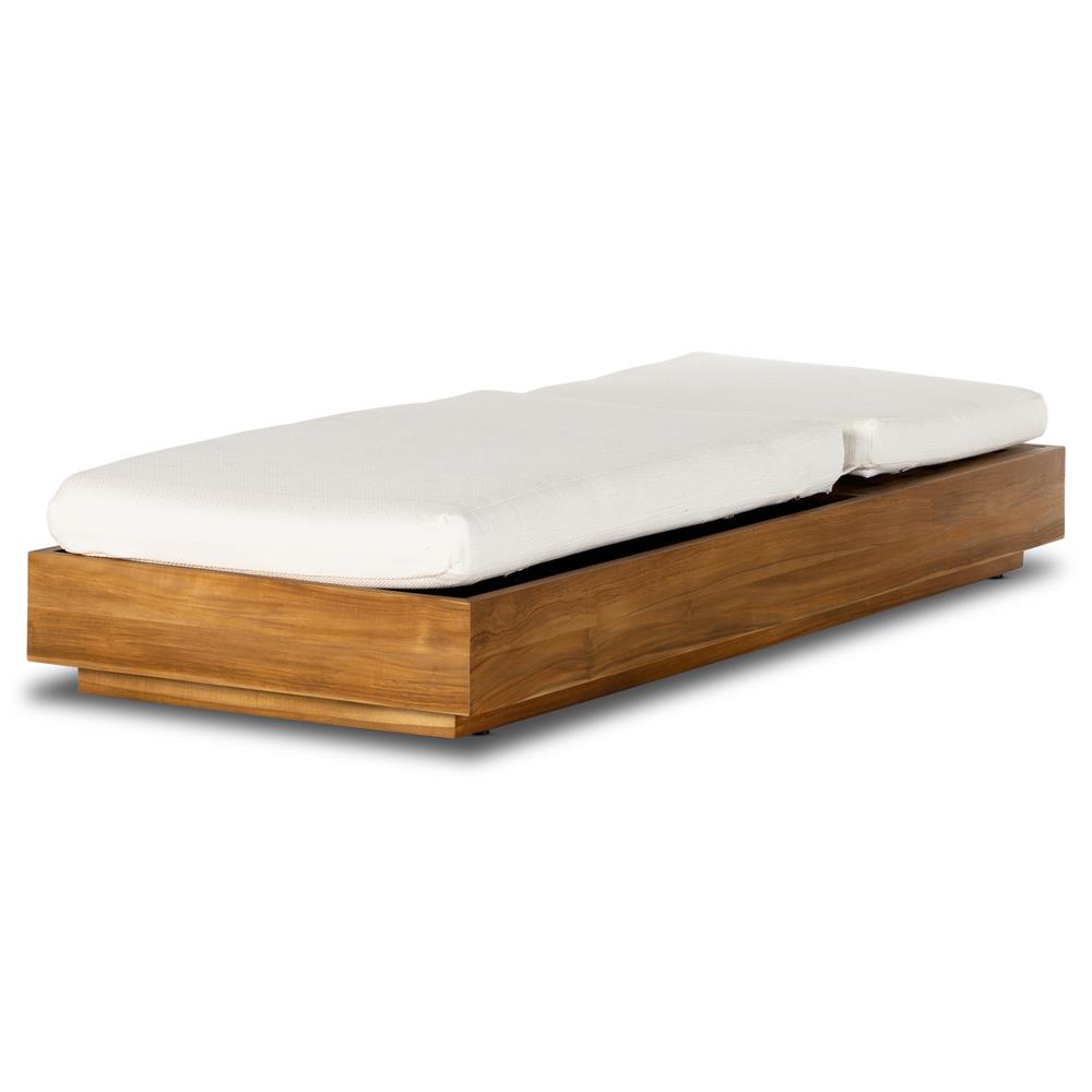 Kisha Modern Classic Cream Upholstered Natural Teak Outdoor Double Chaise