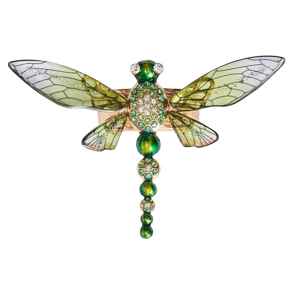 Dragonfly Regency Green Acrylic Gold Metal Napkin Ring - Set of 4