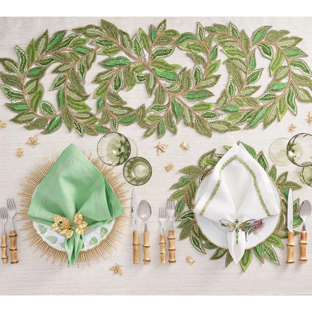 • Juliska Iberian Border Updated Traditional Evergreen Linen Napkin - Set of 4|Kathy Kuo Home