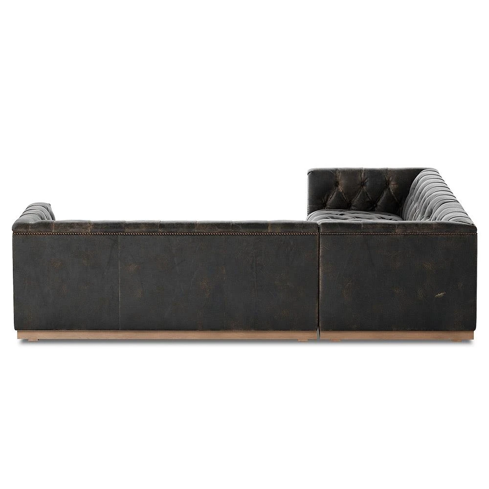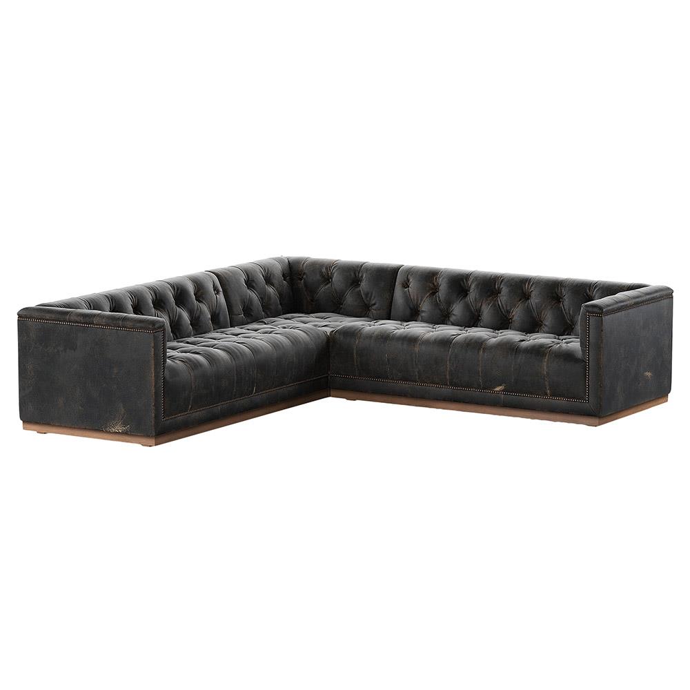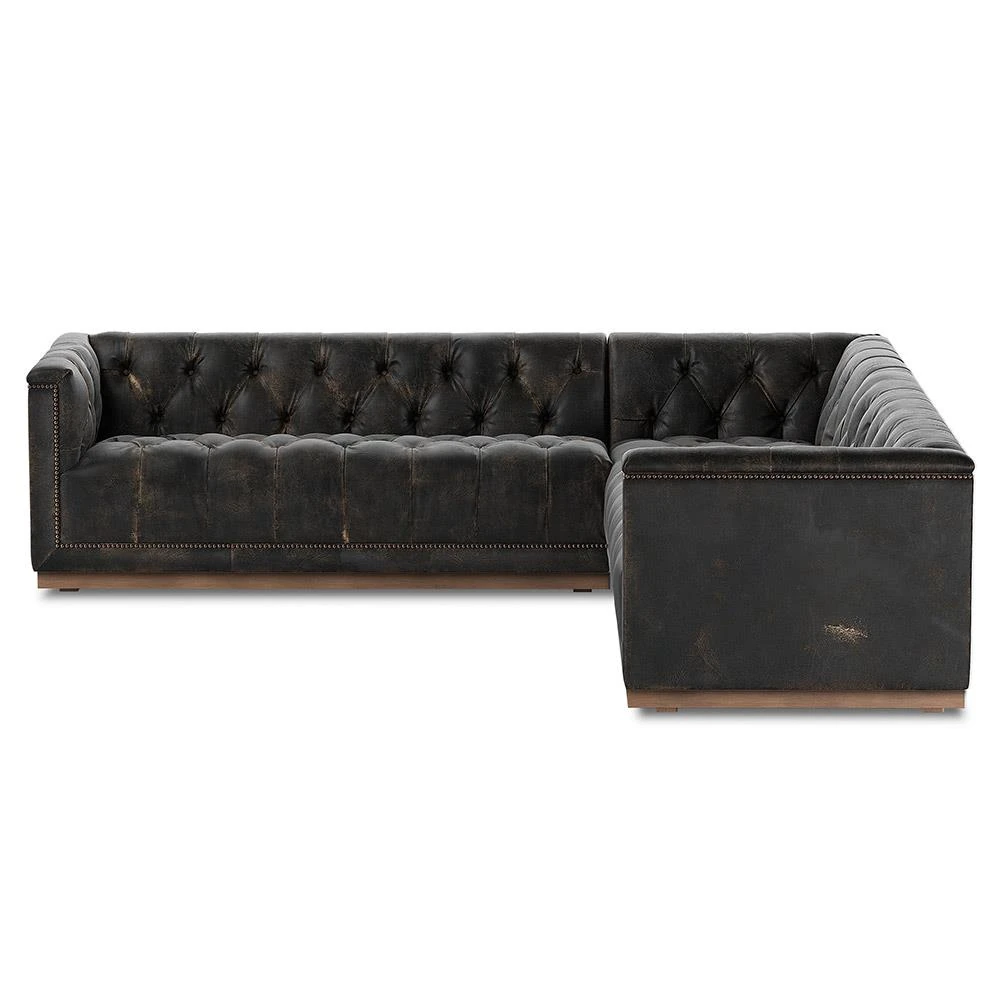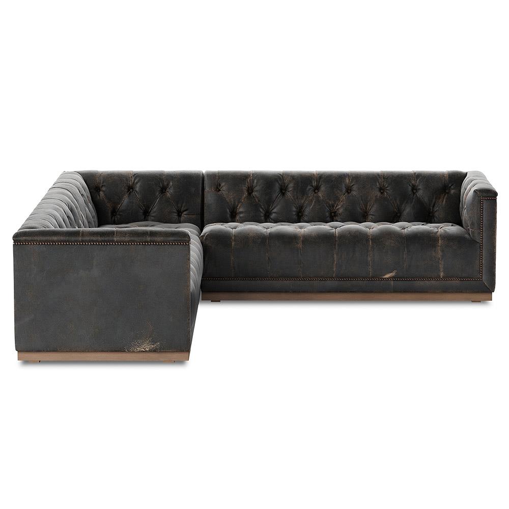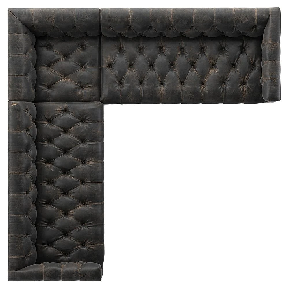 Emmy Rustic Black Leather Nailhead Trim 3 Piece Sectional Sofa - 101"Wx101"D