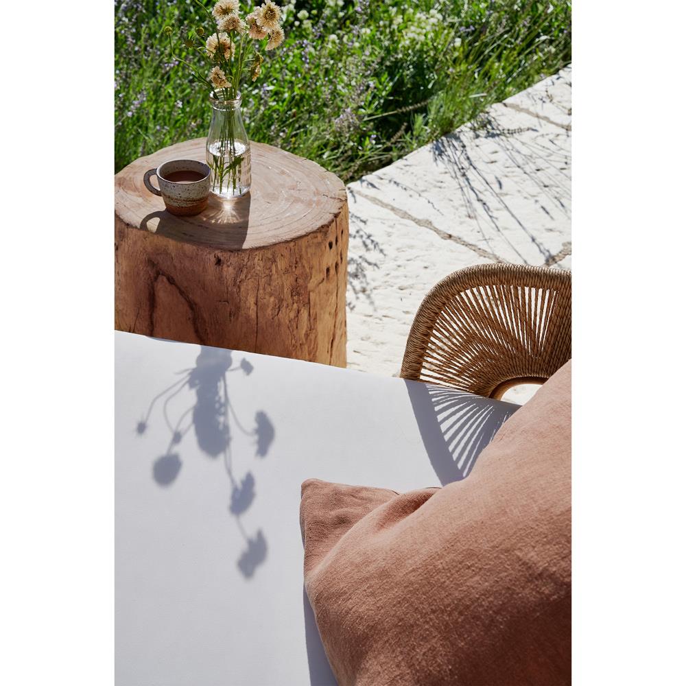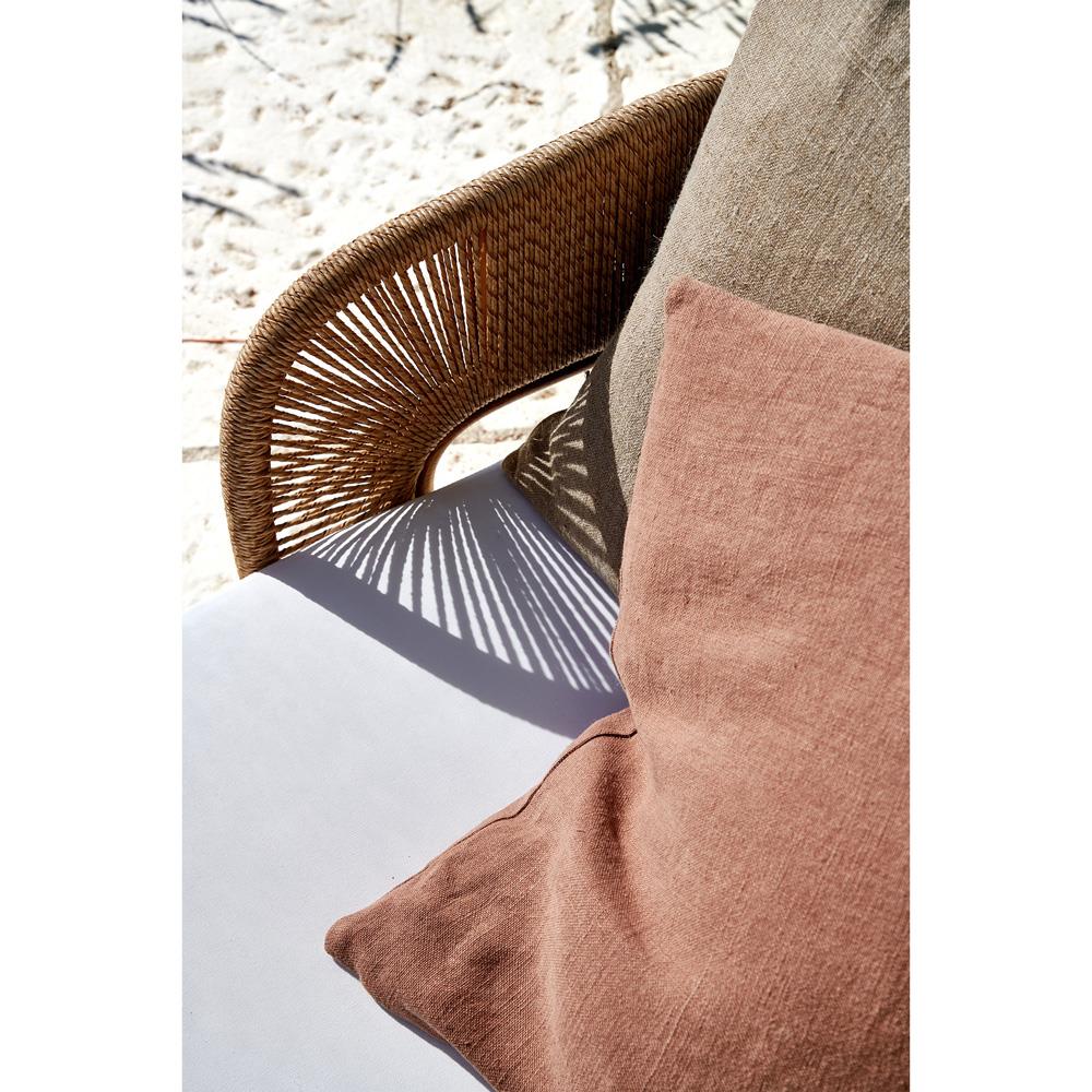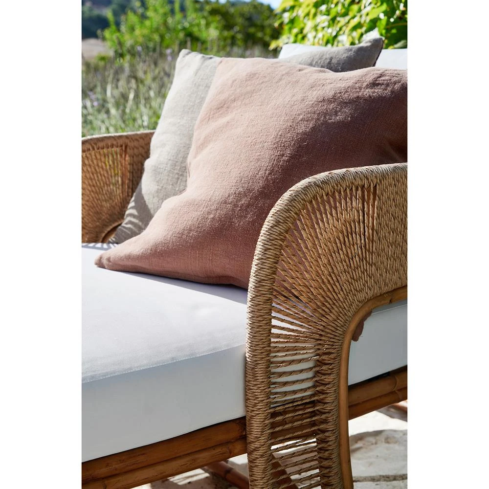 • Handmade from skin-on rattan, wrapped with synthetic rush and finished with invitingly plush cushions
