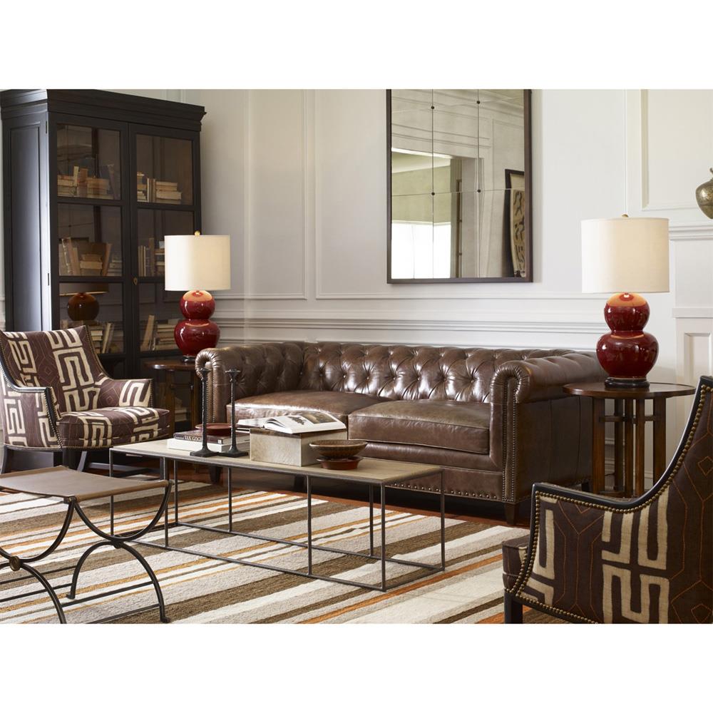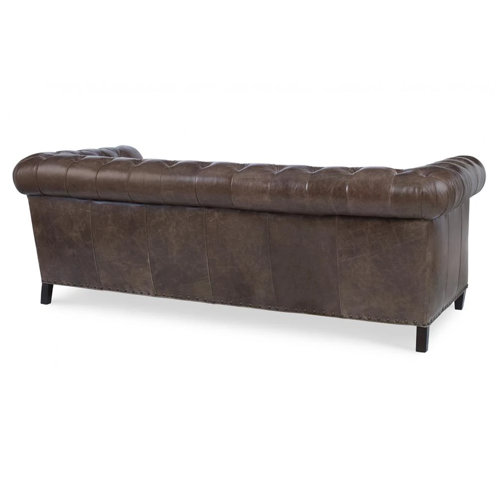 Century Sorenson Espresso Brown Leather Mahogany Frame Tufted Nailhead Sofa