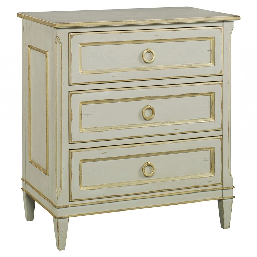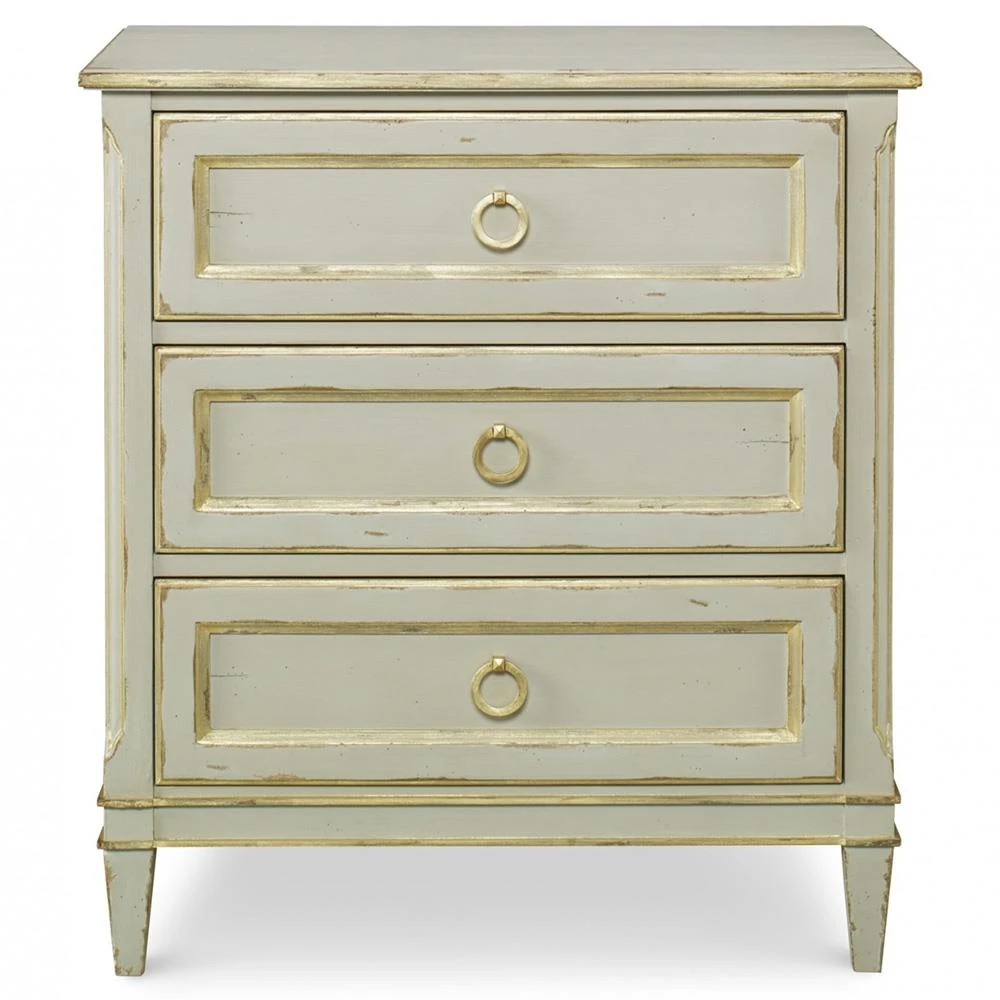 Century Madeline French Country Light Grey Wood Gold Accent 3 Drawer Nightstand