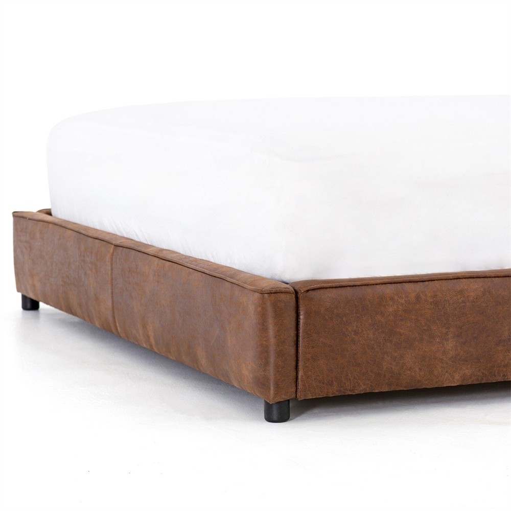 Linus Rustic Lodge Brown Upholstered Faux Leather Platform Bed - Queen