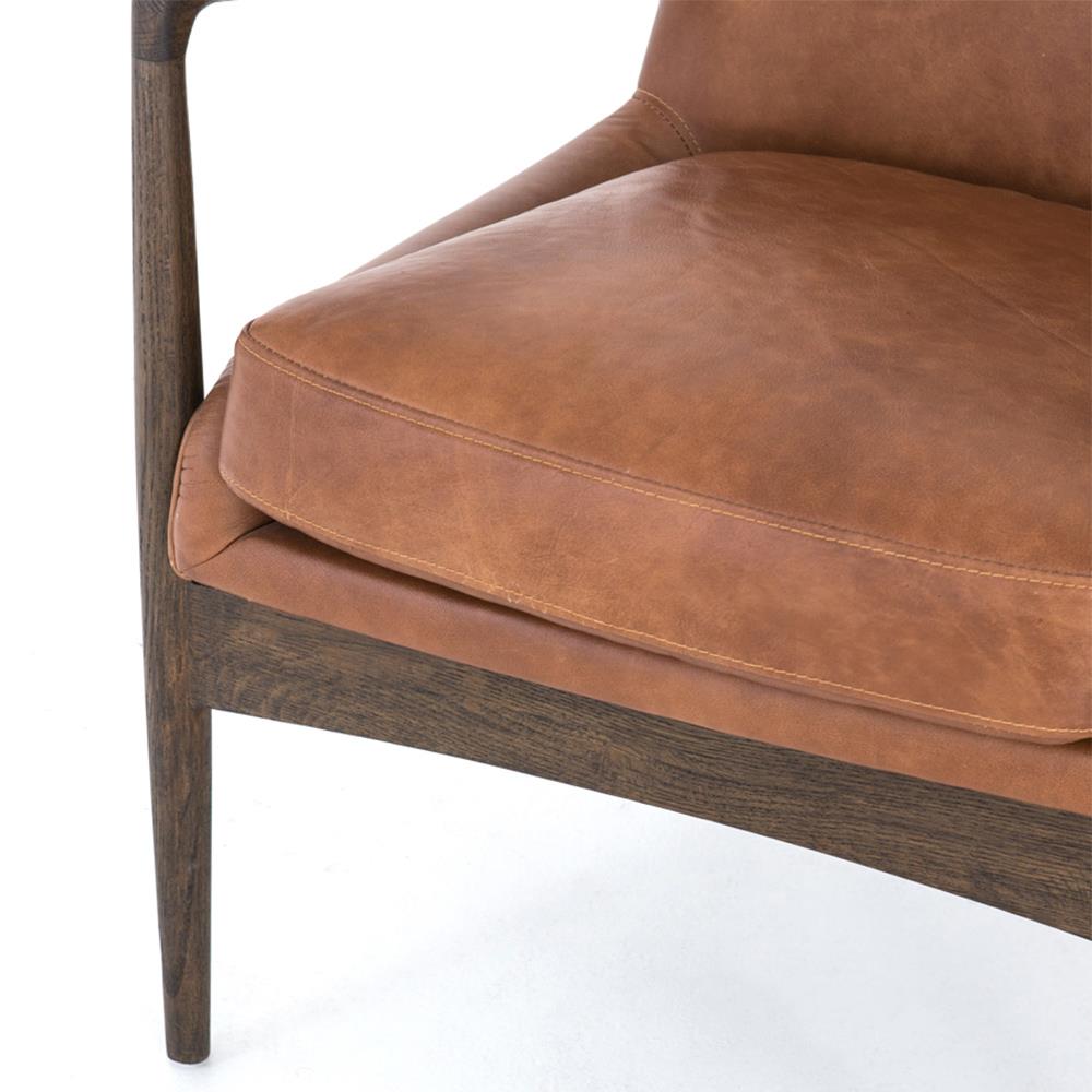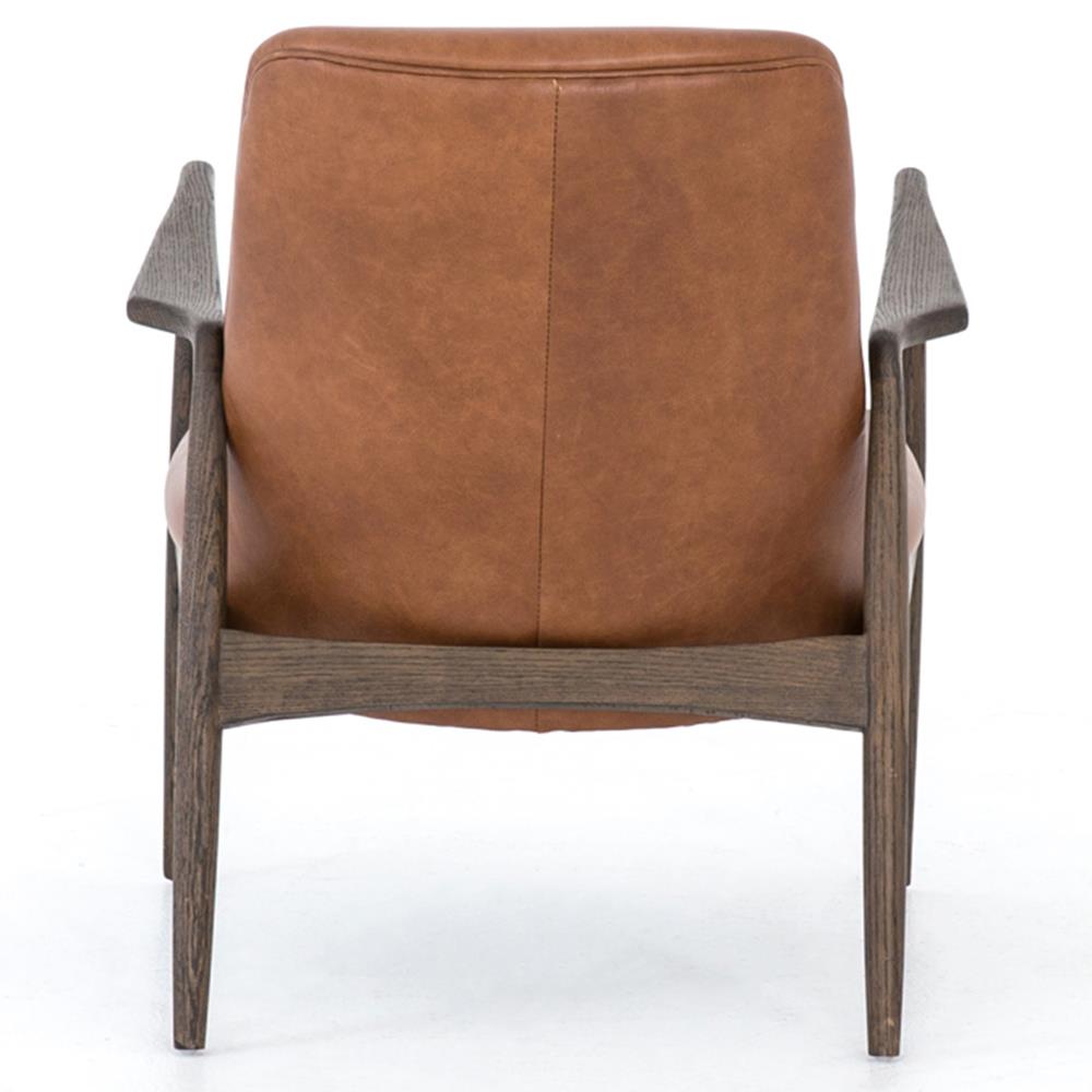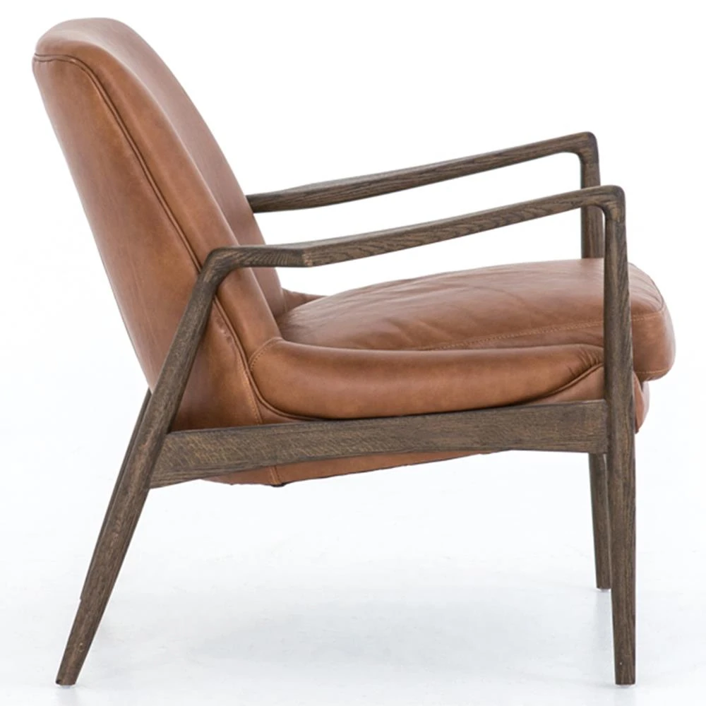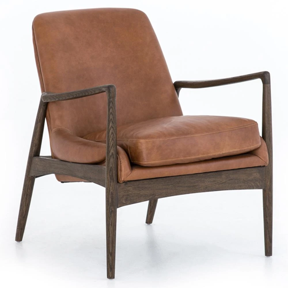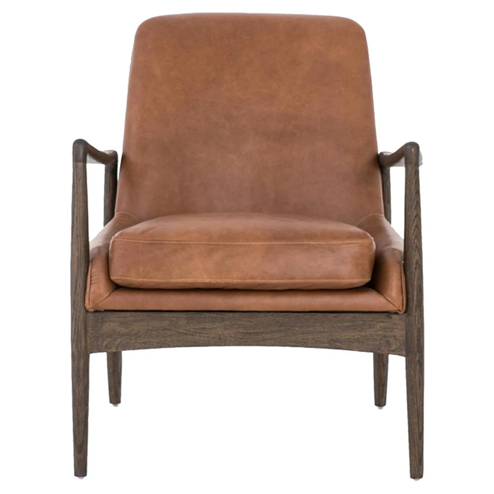 Olena Mid Century Brown Upholstered Leather Wood Frame Living Room Arm Chair