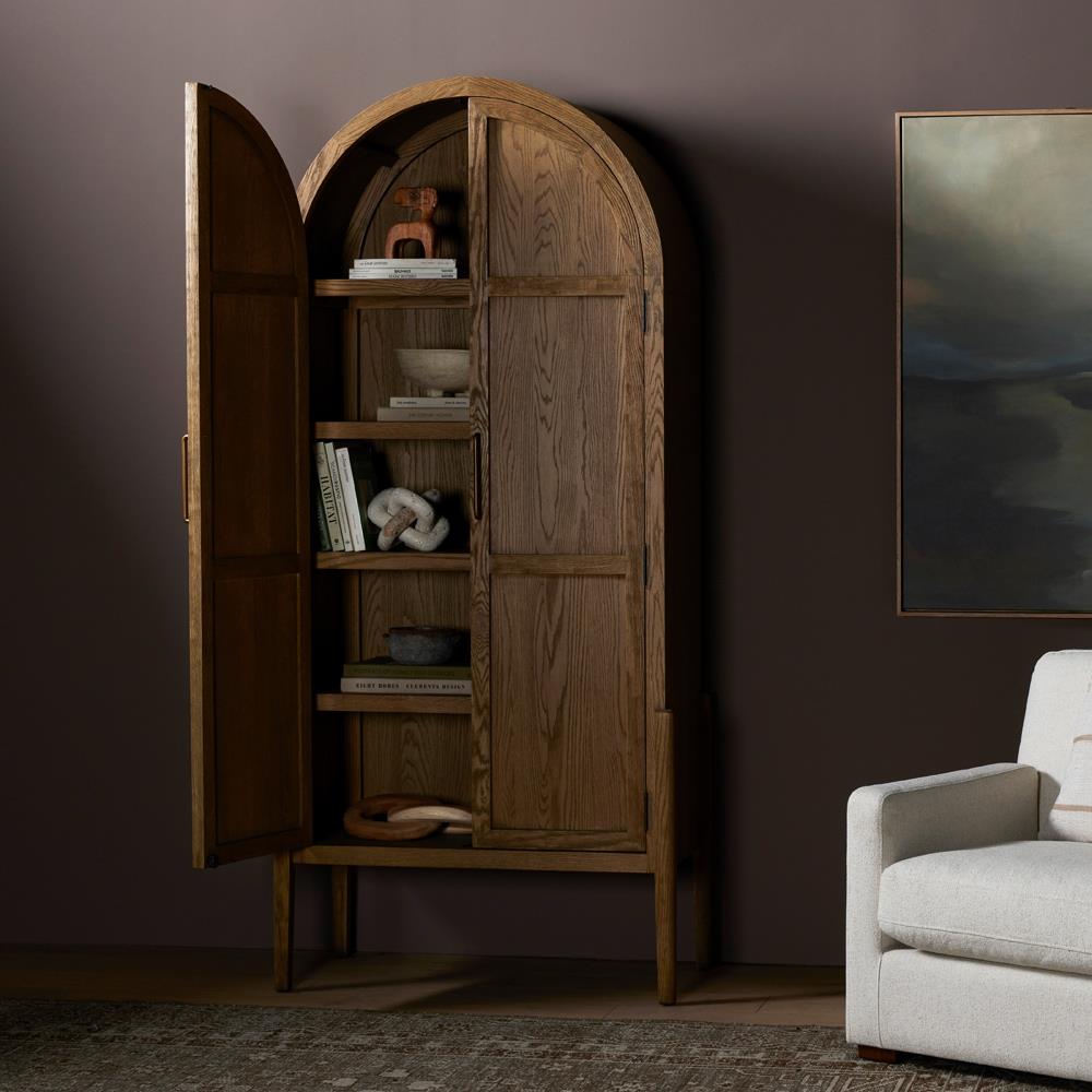 Ivan Updated Traditional Brown Oak Wood Arched Bookcase