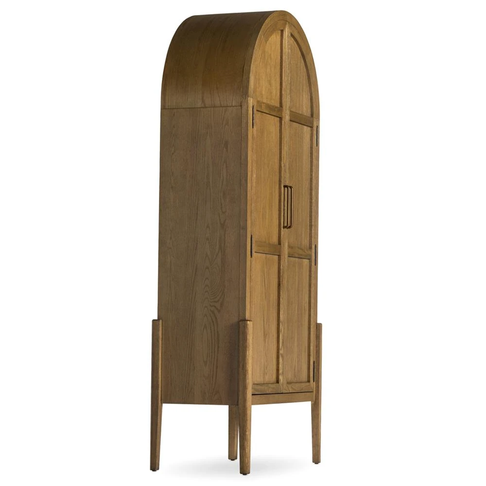 • Ivan Mid Century Brown Solid Oak Wood 2 Glass Door Arched Display Case|Kathy Kuo Home