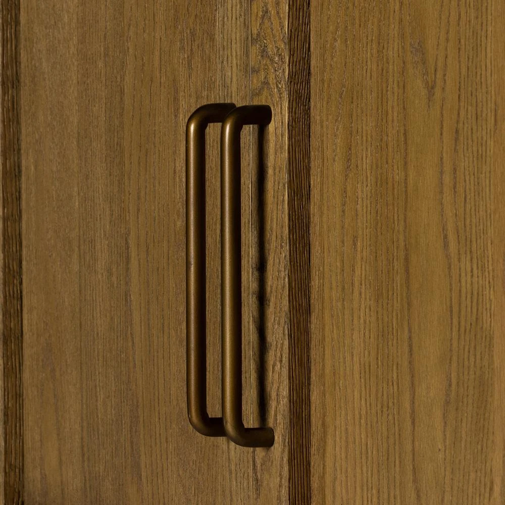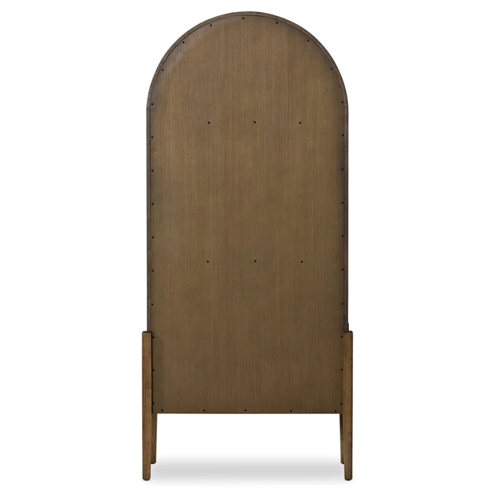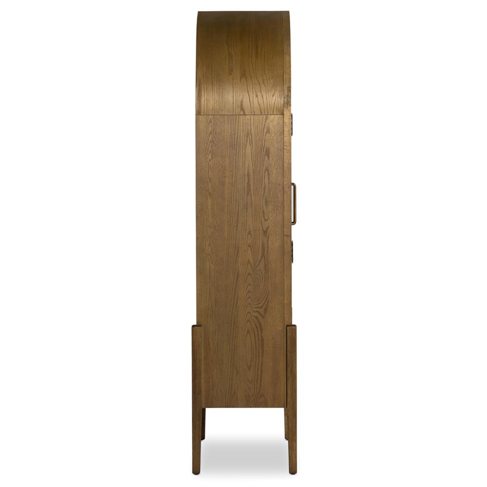 Ivan Mid Century Modern Brown Oak Wood Brass Iron 2 Door Arched China Cabinet