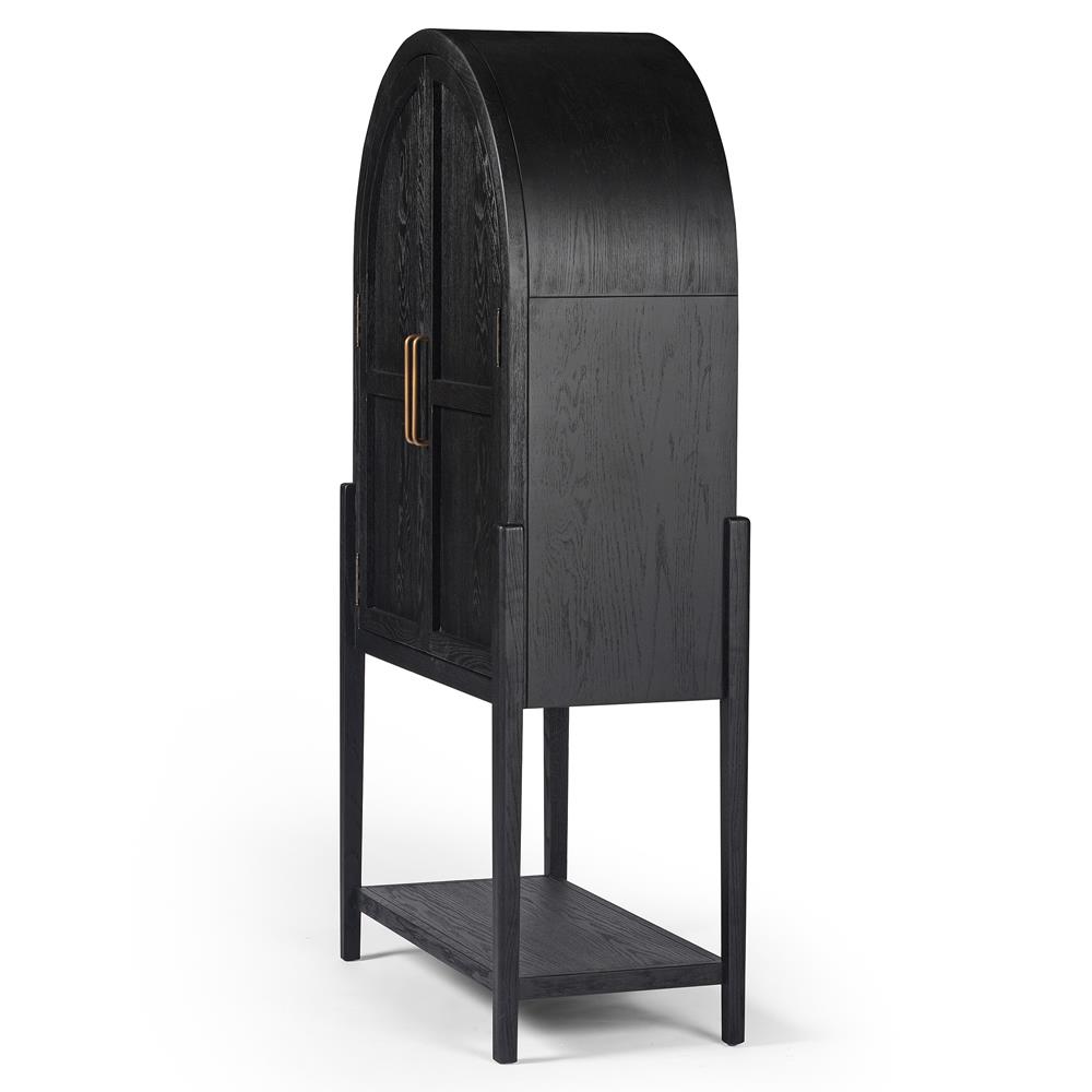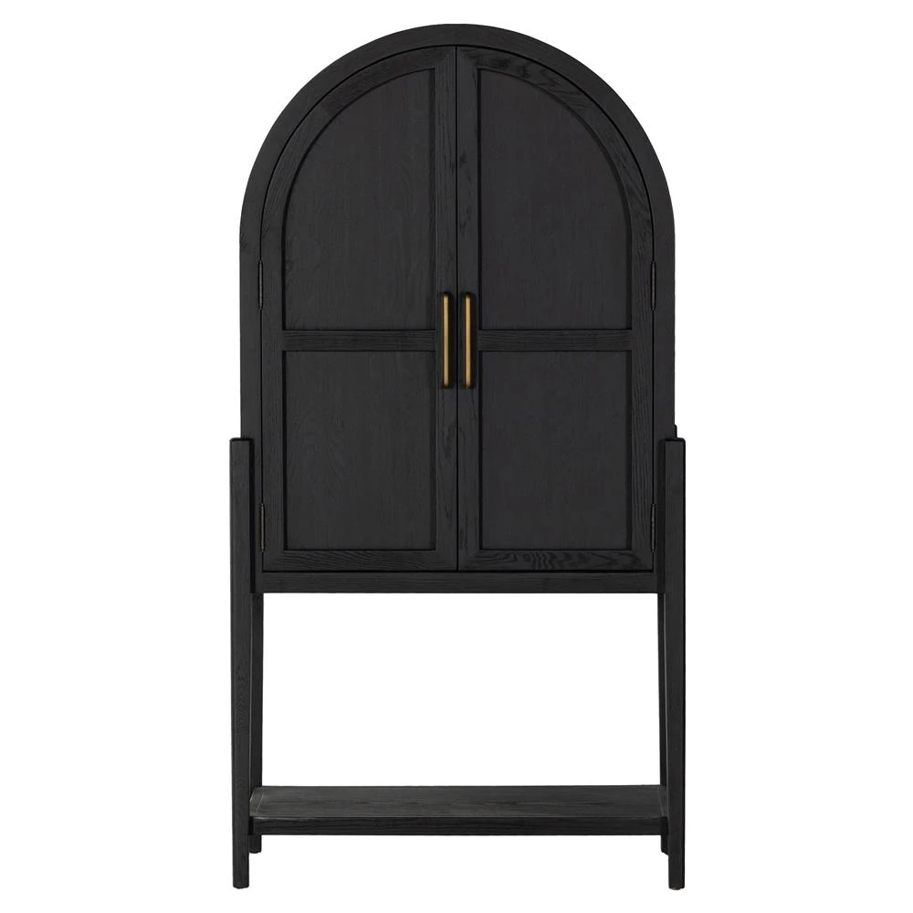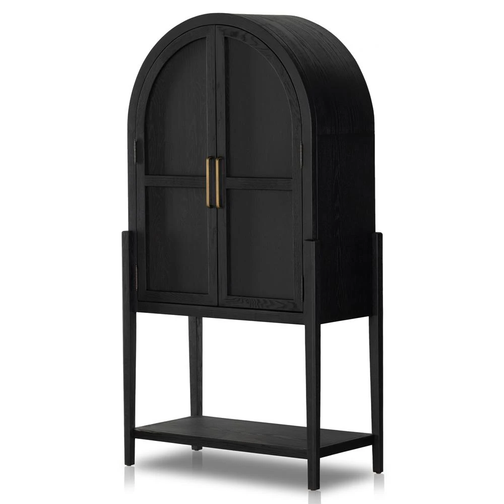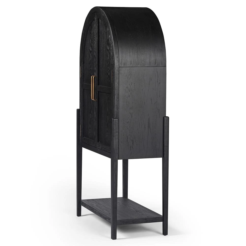 Ivan Mid Century Modern Black Oak Wood Brass Iron 2 Door Arched China Cabinet