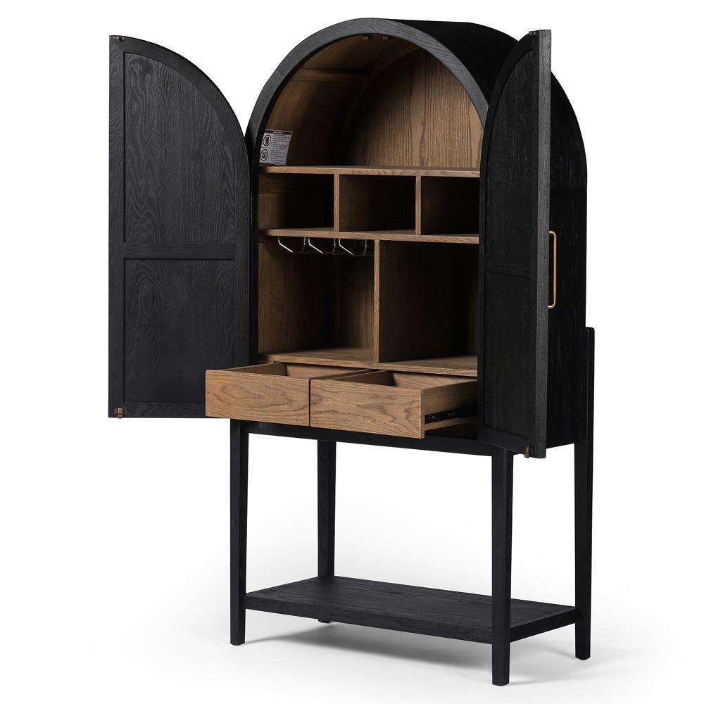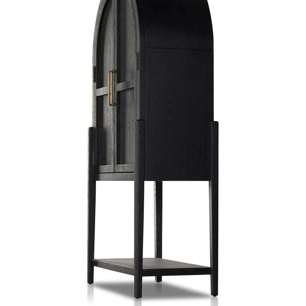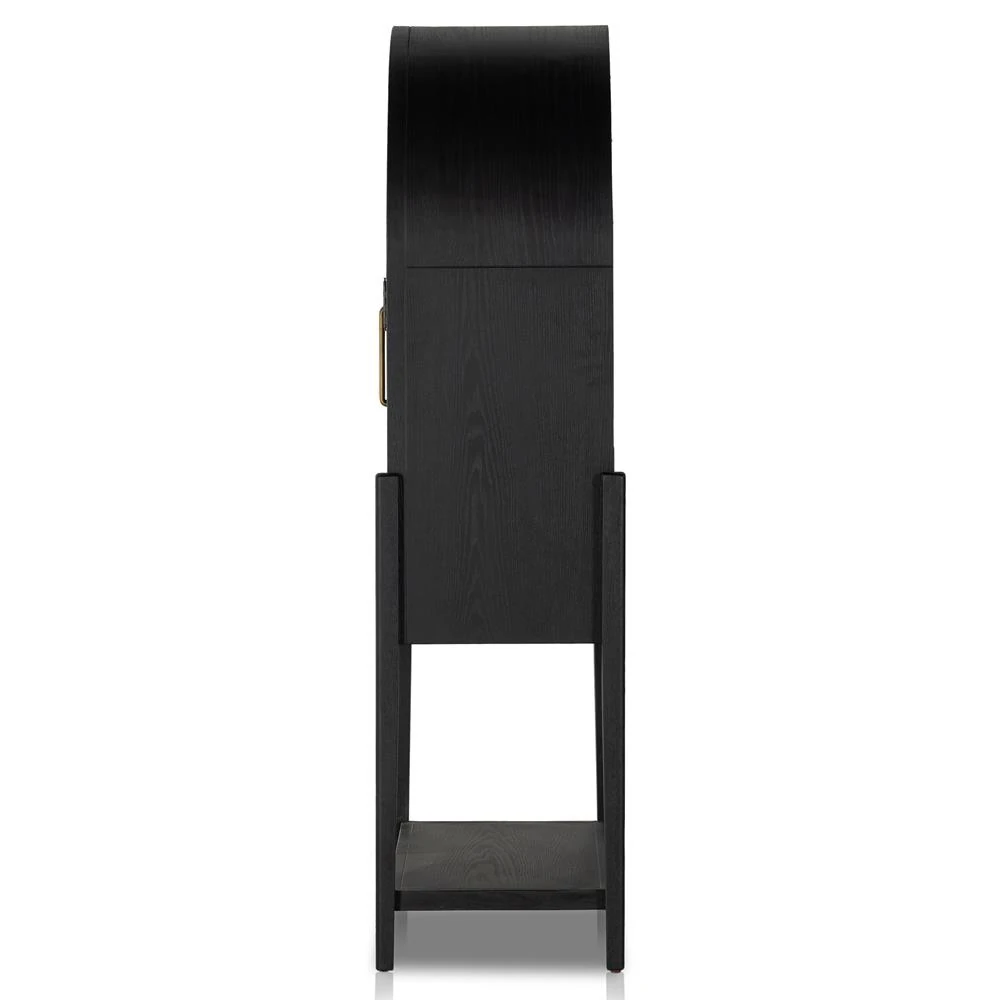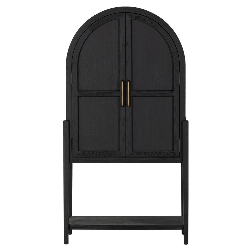 Ivan Mid Century Modern Black Oak Wood Brass Iron 2 Door Arched China Cabinet