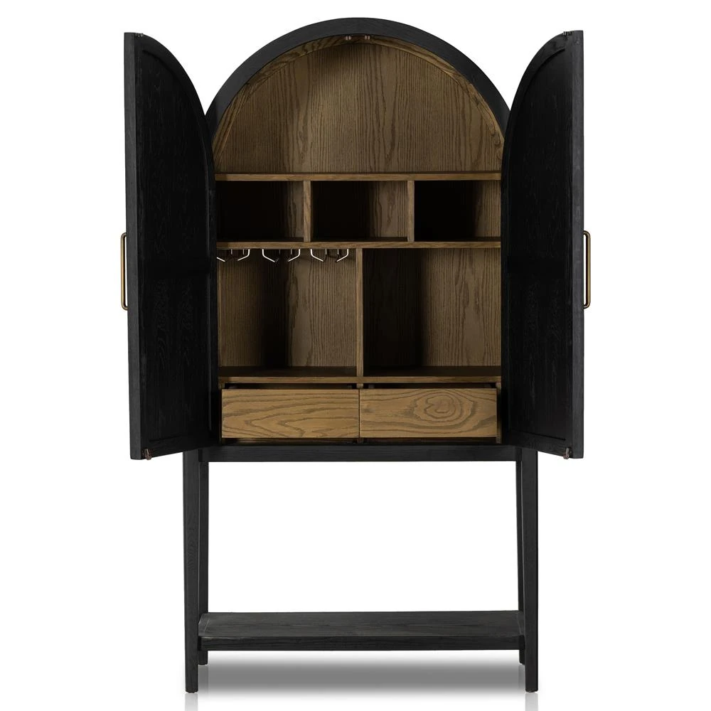 Bari Cracked Smoked Black Oak Bar Cabinet