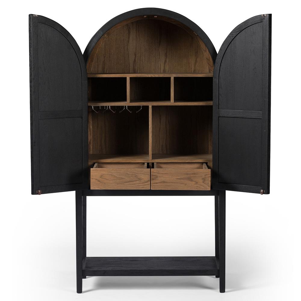 • Bari Cracked Smoked Black Oak Bar Cabinet|Kathy Kuo Home