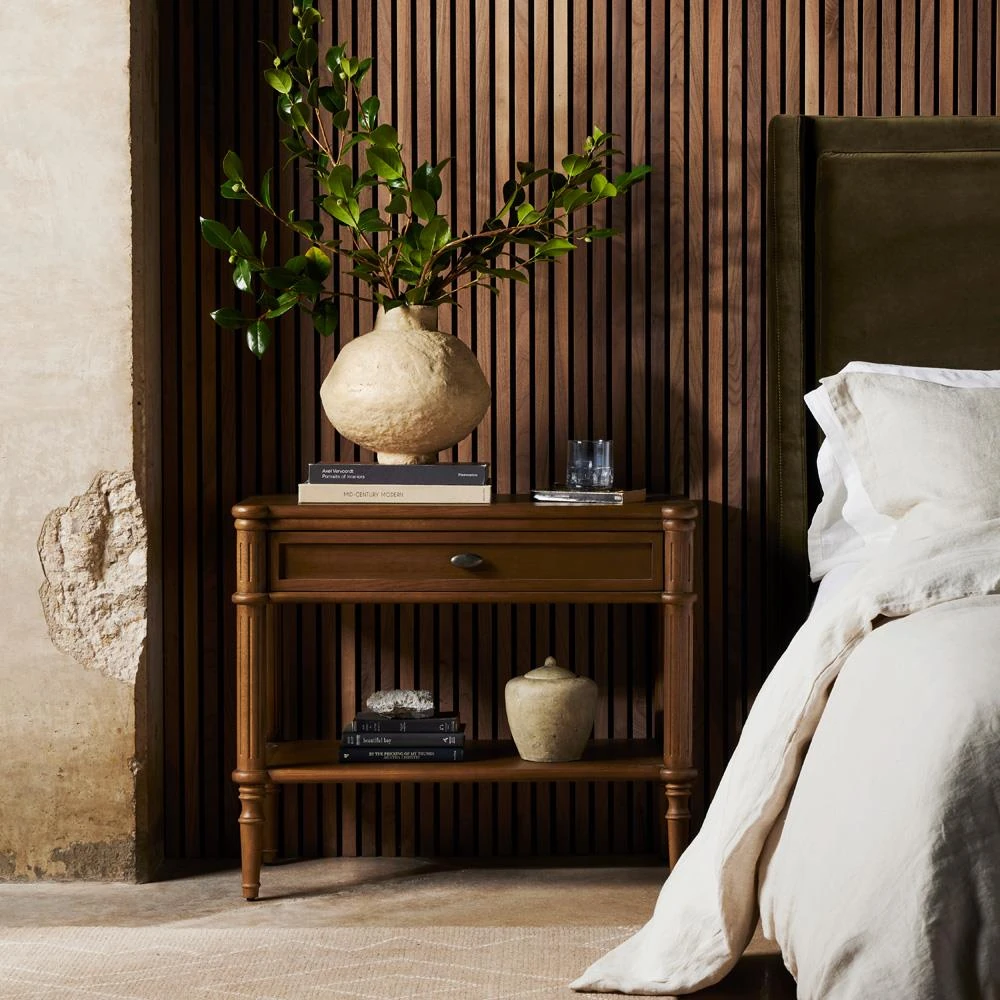 • Abdiel Modern Classic Walnut Oak Wood Nightstand|Kathy Kuo Home