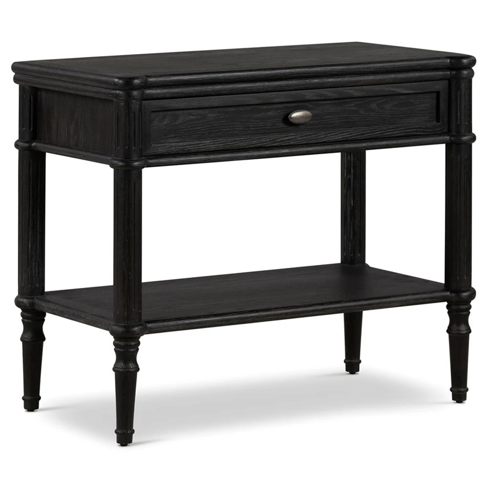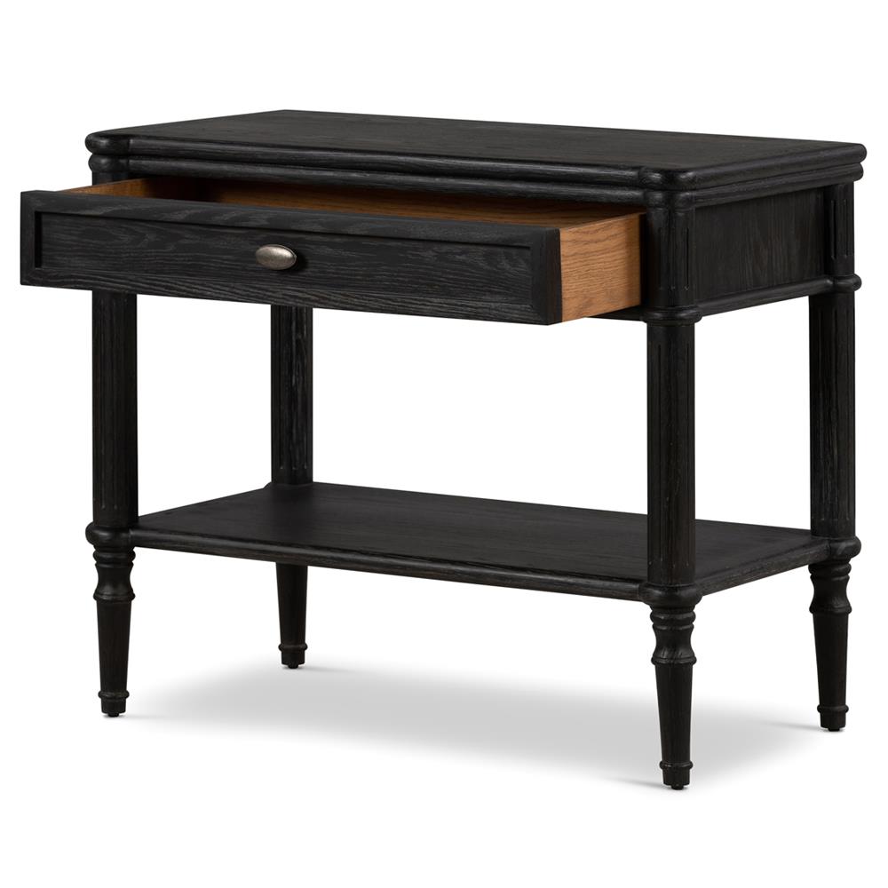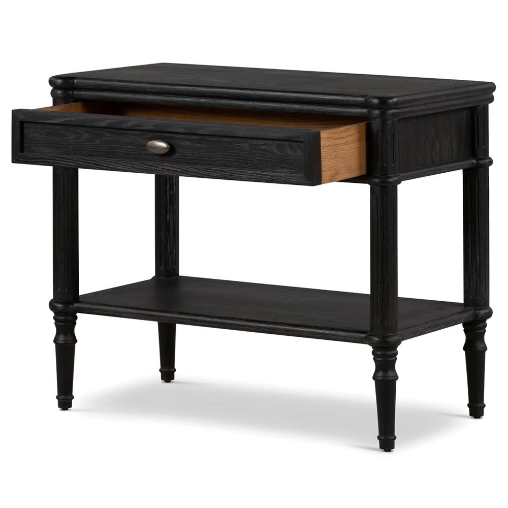 • Minnie Modern Classic Black Oak Wide Nightstand|Kathy Kuo Home