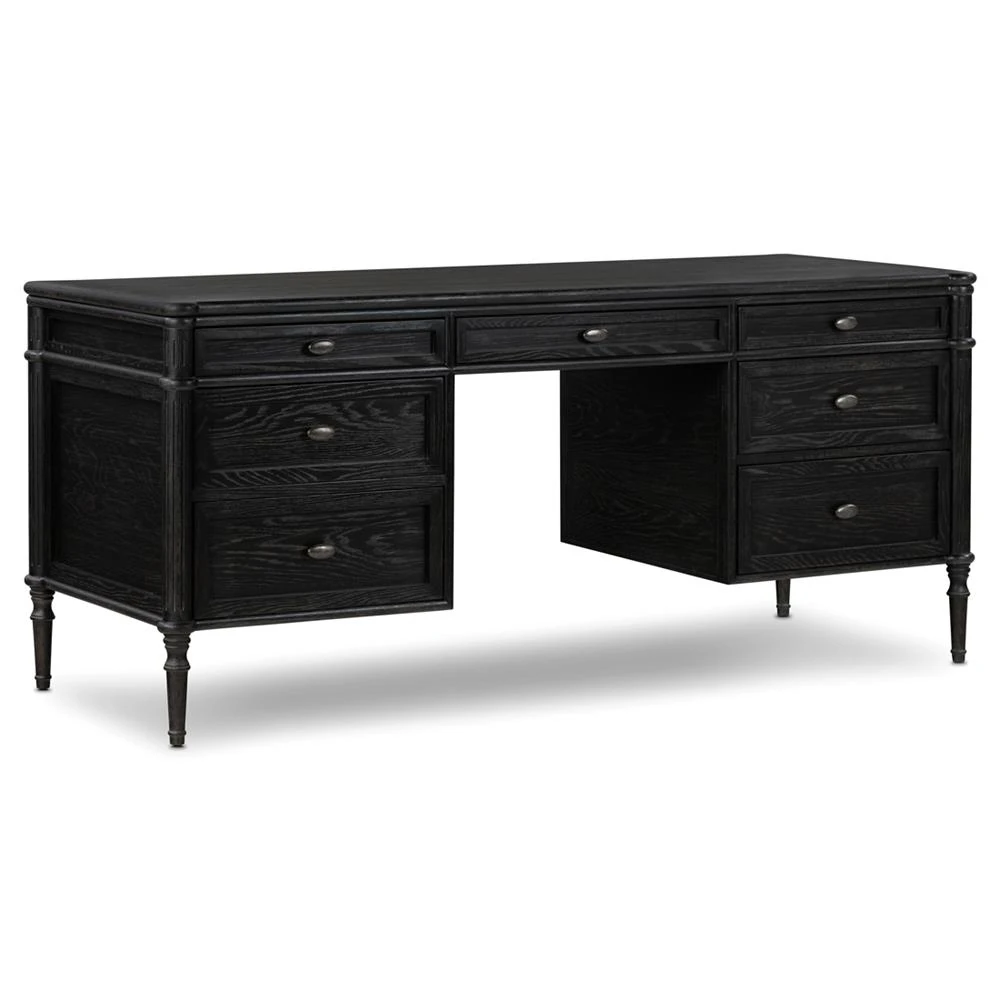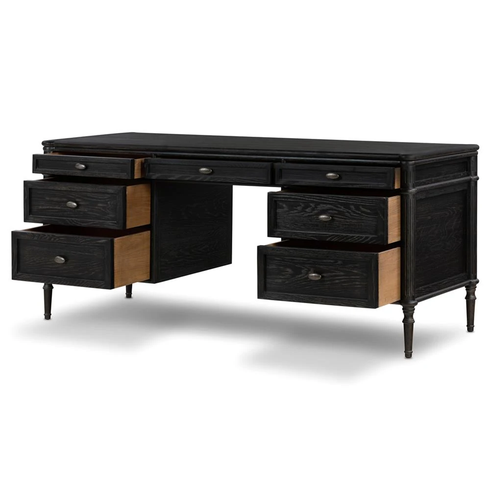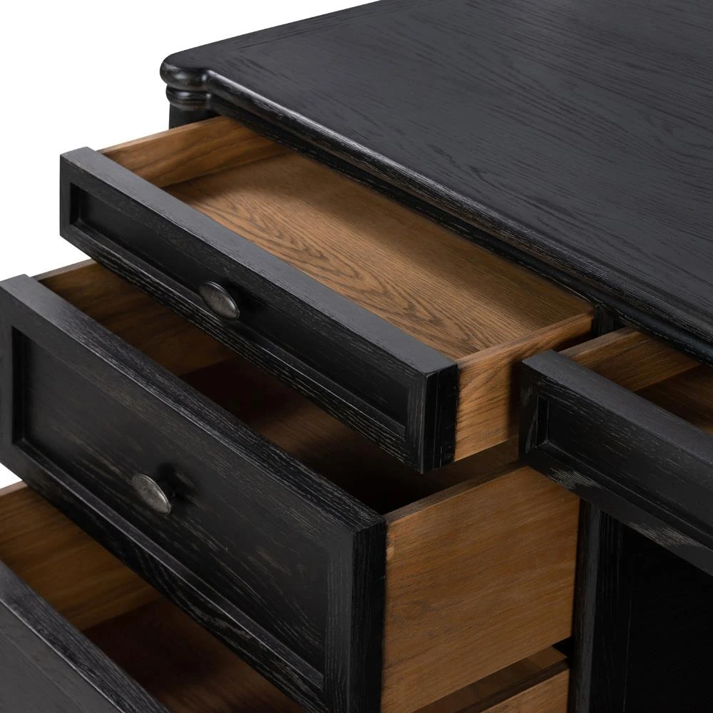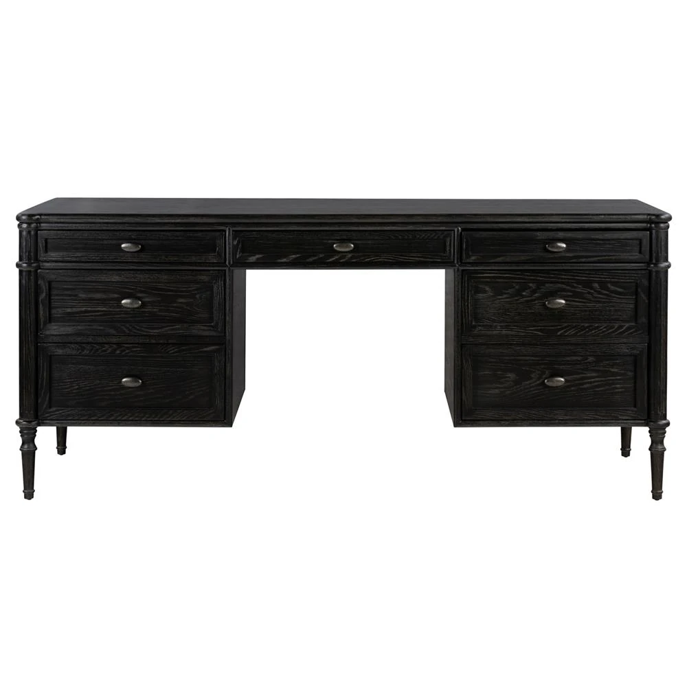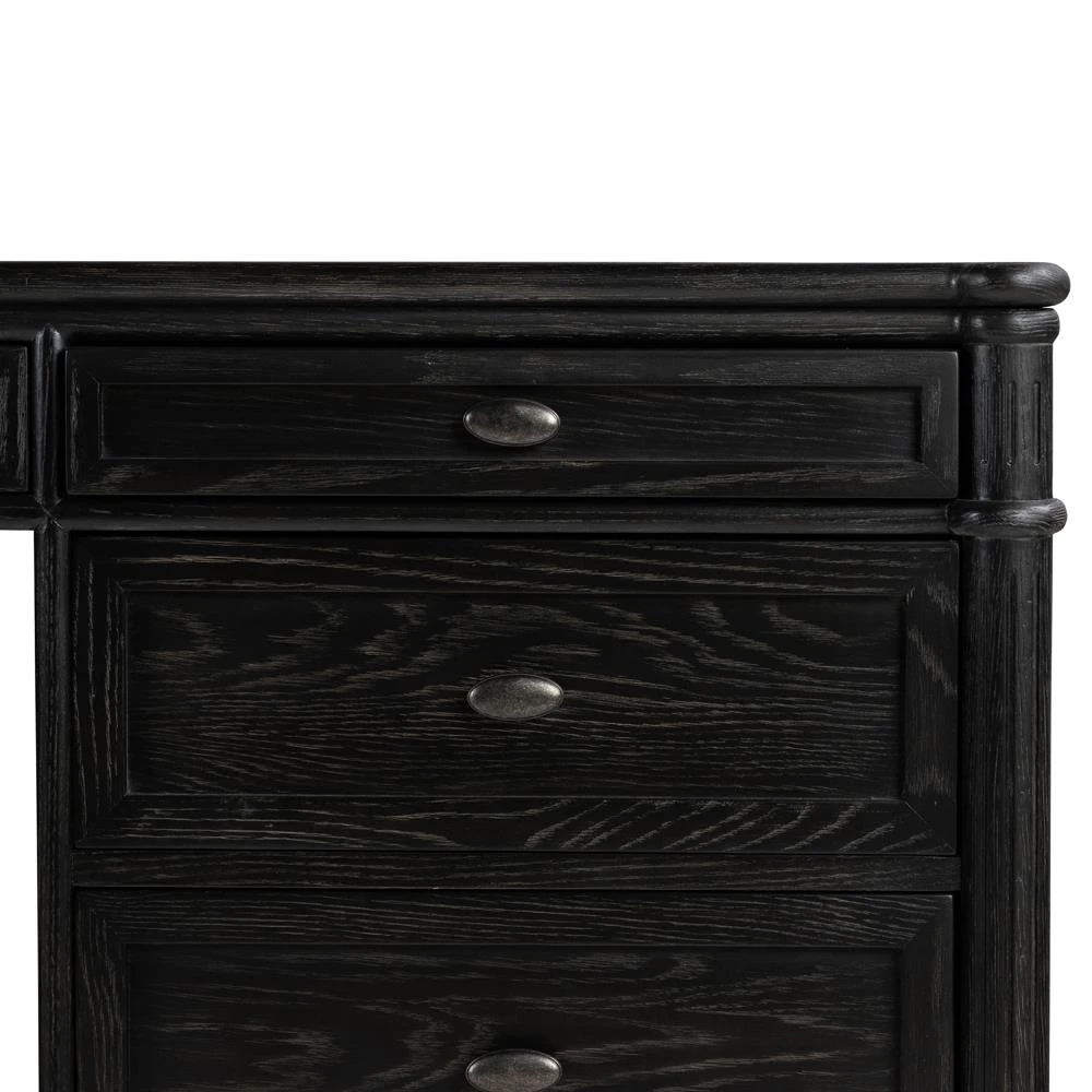 Tacorey Rustic Lodge Black Solid Oak Wood 7 Drawer Executive Desk