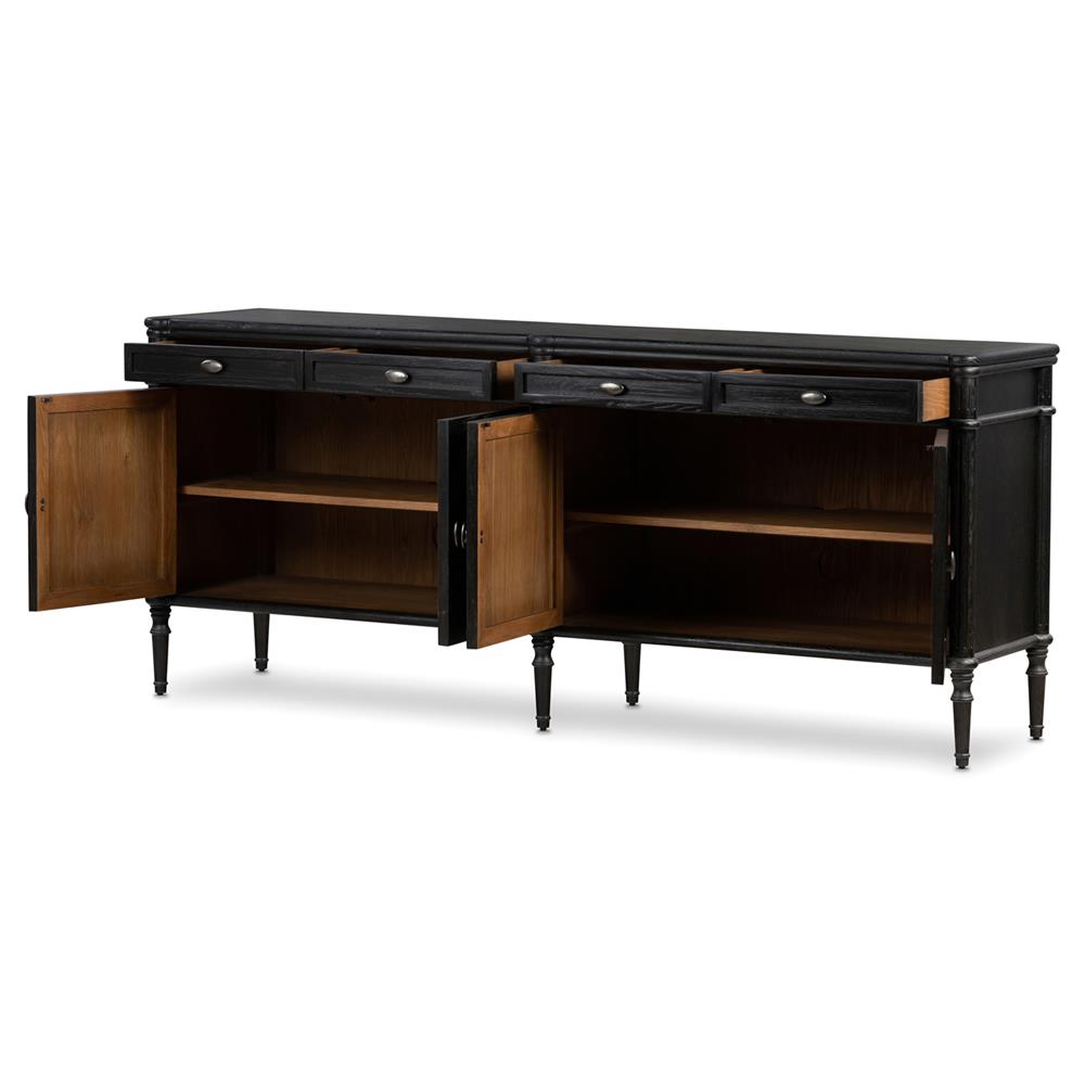 Tacorey Rustic Lodge Black Solid Oak Wood 4 Drawer 4 Door Sideboard