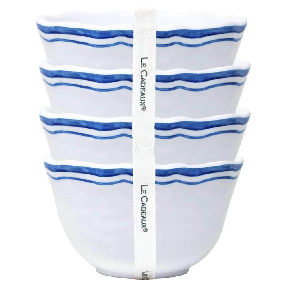 Maison French Blue Edge White Melamine Dessert Bowl - Set of 4