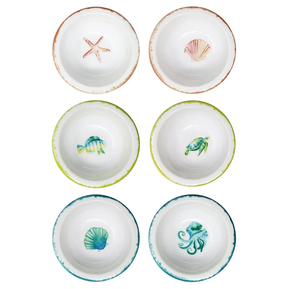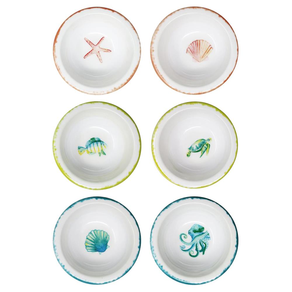 La Mer Coastal White Ocean Creatures Print Mini Bowl - Set of 12