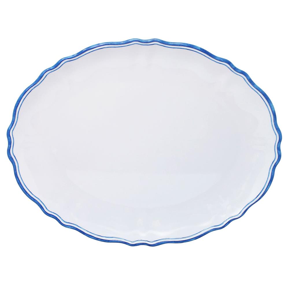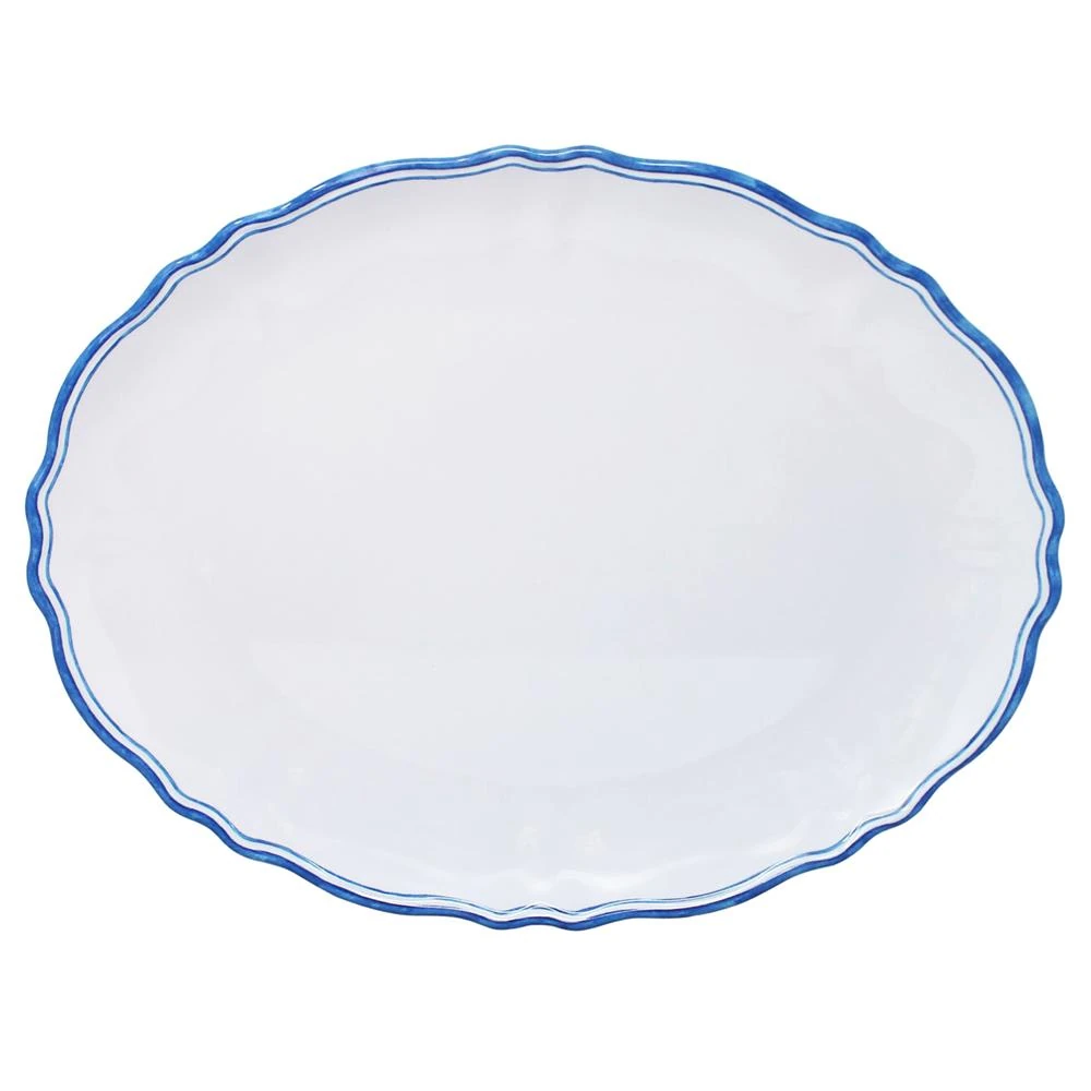 Maison French Country Blue Edge White Melamine Oval Serving Platter
