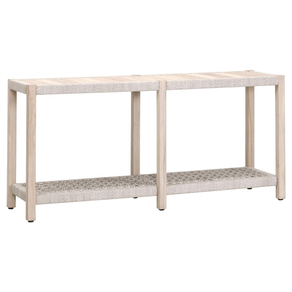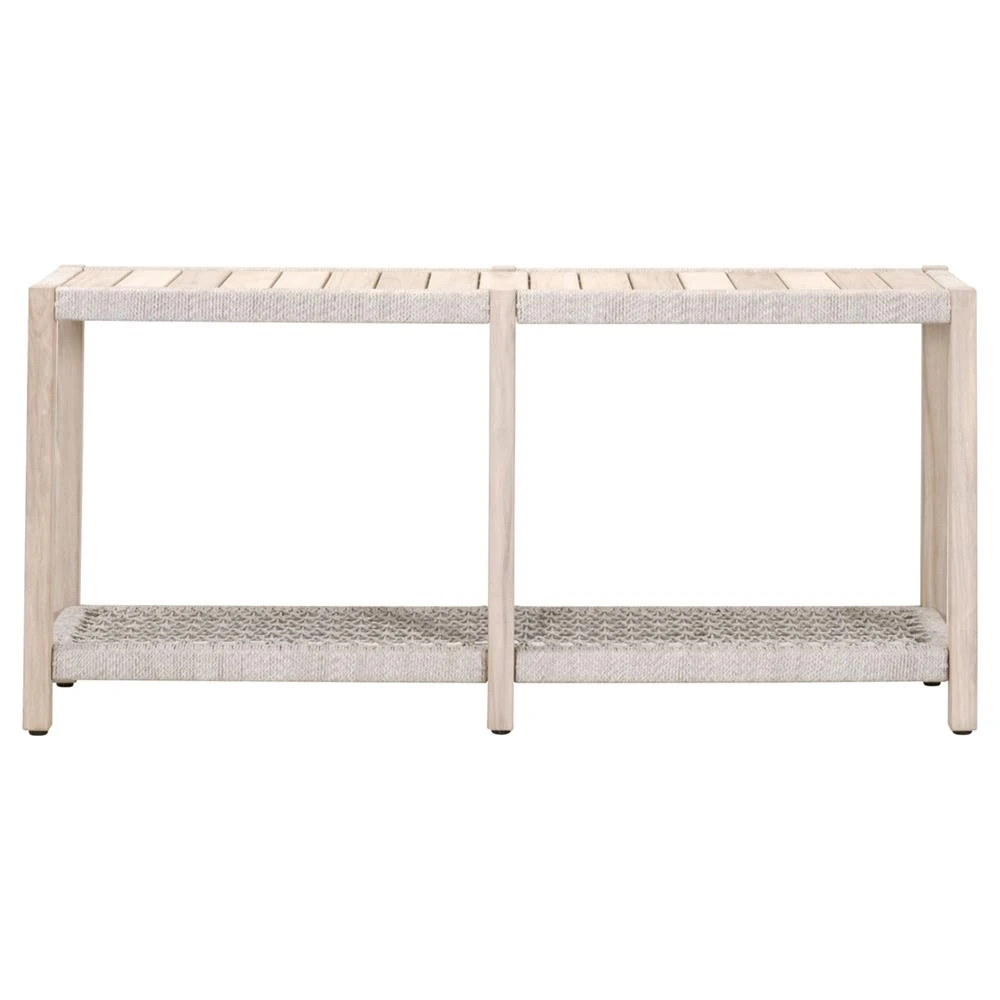 Wren Coastal Taupe Woven Rope Solid Teak Rectangular Outdoor Console Table
