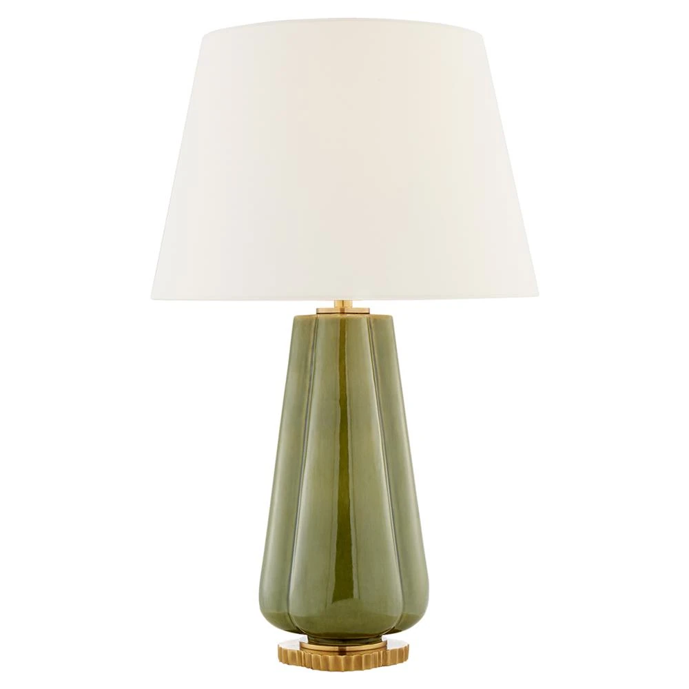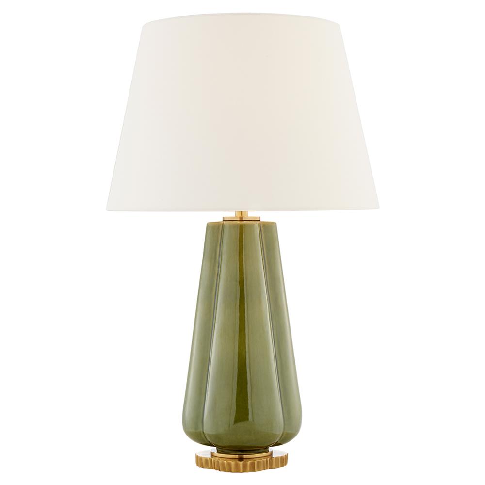 Visual Comfort Penelope Regency Green Porcelain Linen Shade Table Lamp