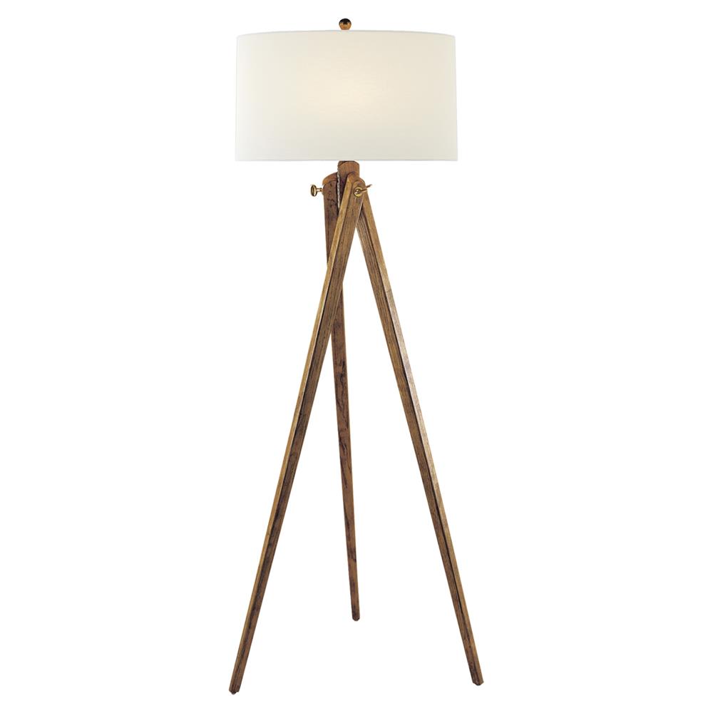 Visual Comfort Tripod Industrial Loft French Wax Wood Linen Shade Floor Lamp