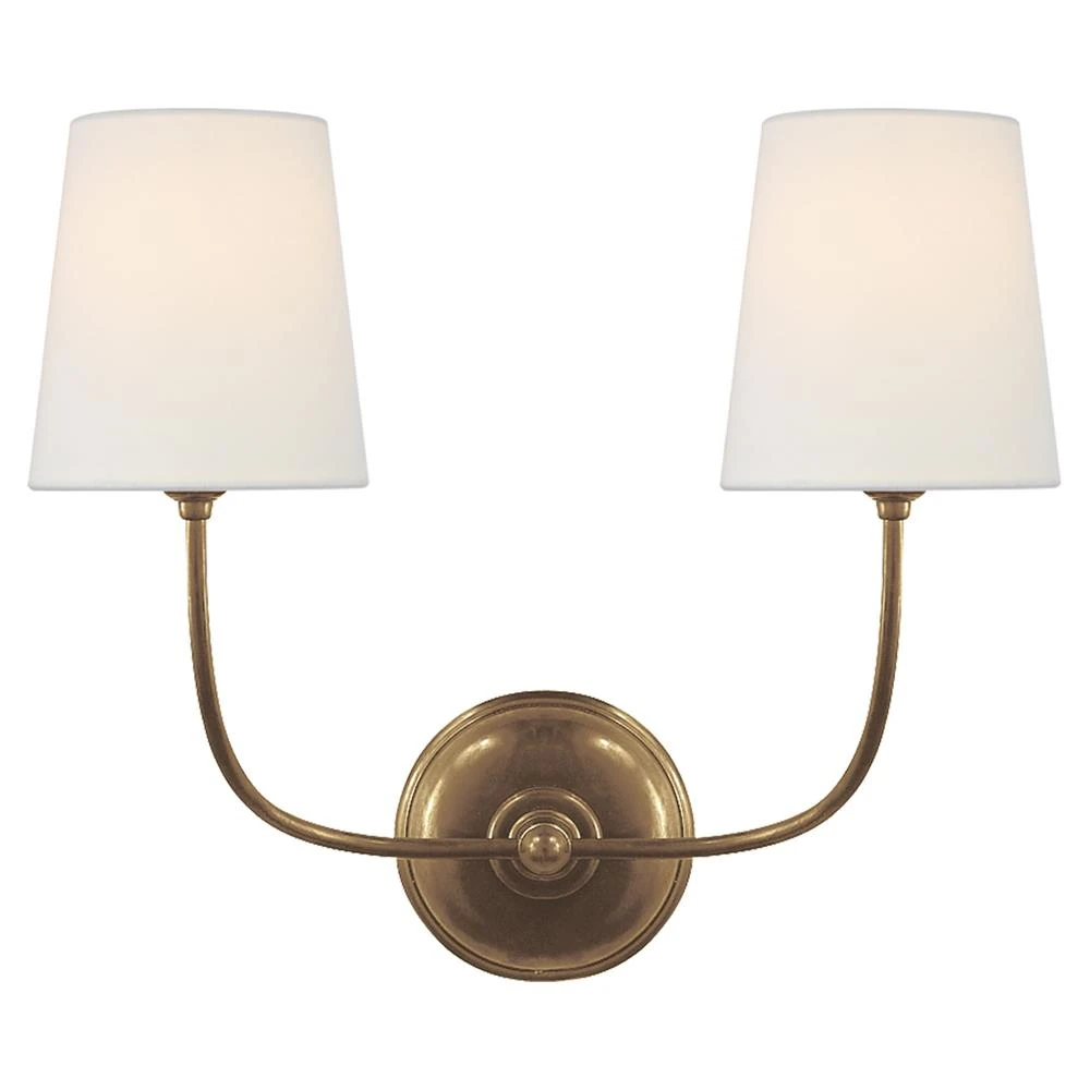 Visual Comfort Vendome Modern Antique Brass Linen Shade Double Armed Sconce