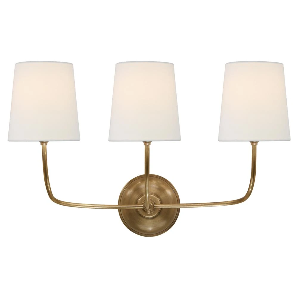 Visual Comfort Vendome Modern Antique Brass Linen Shade Triple Armed Wall Sconce