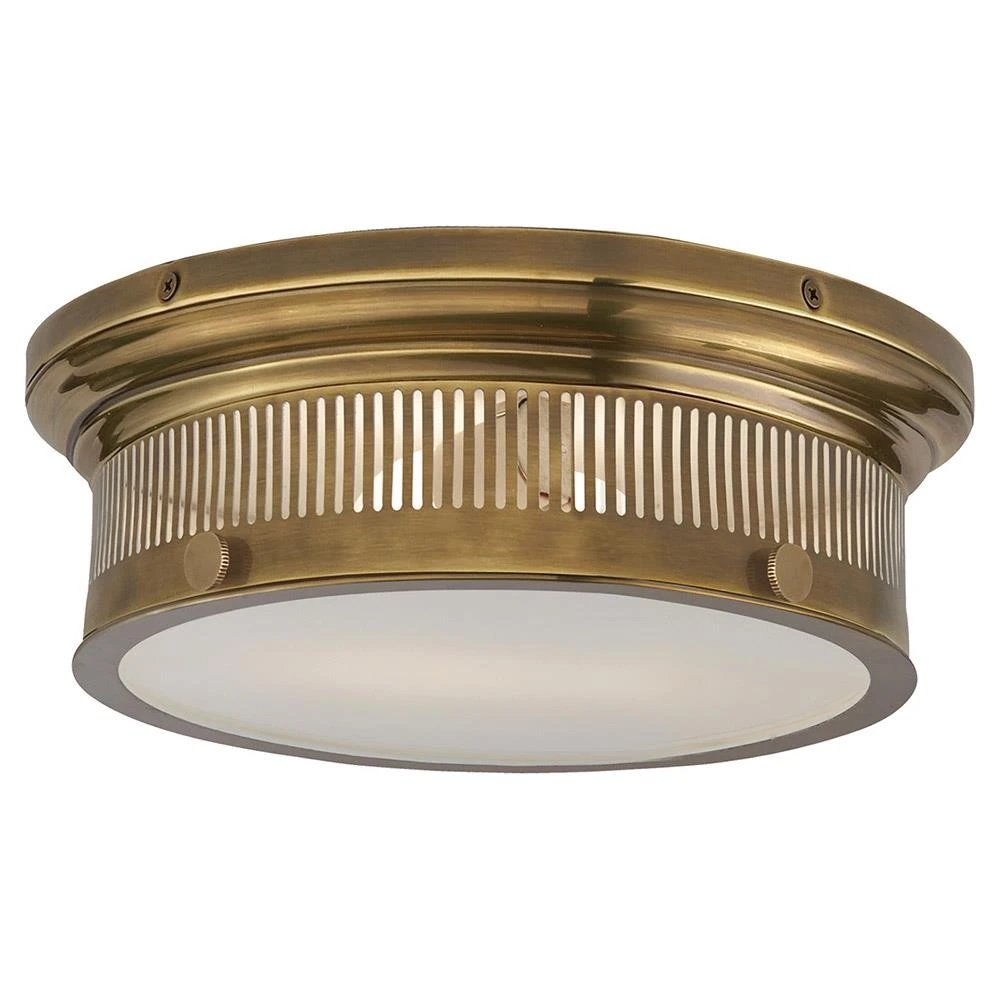 Visual Comfort Alderly Antique Brass White Glass Flush Mount - Small