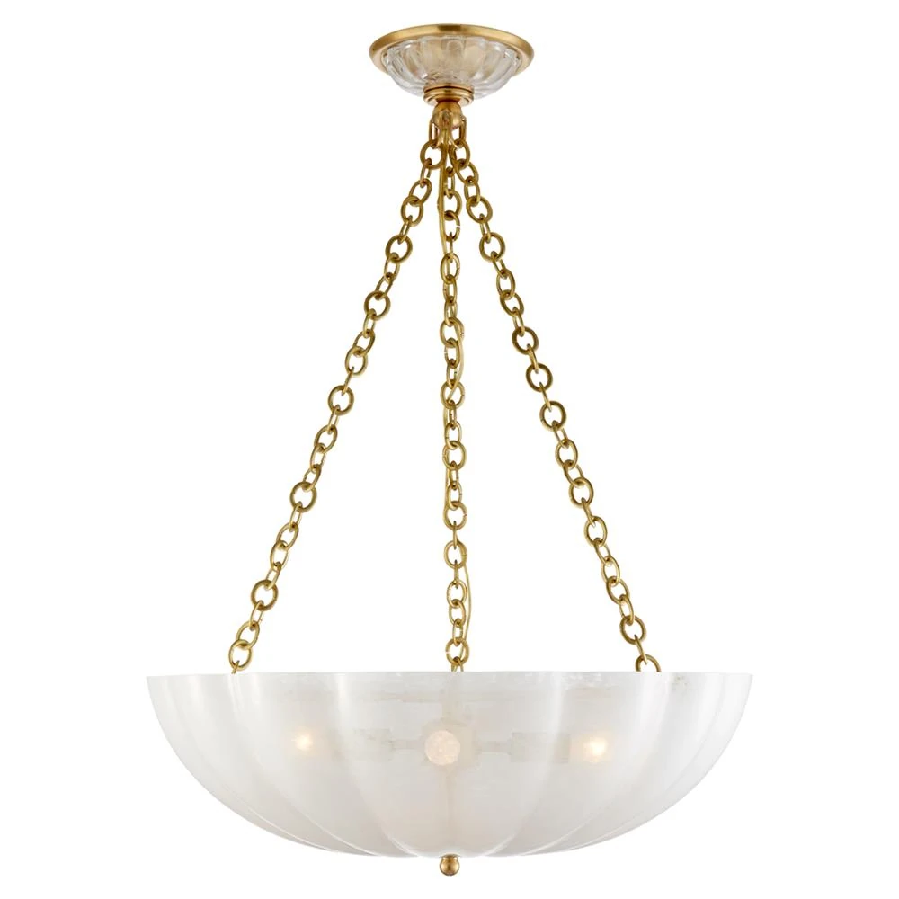 Visual Comfort Rosehill Mid Century Antique Brass Metal White Glass Chandelier