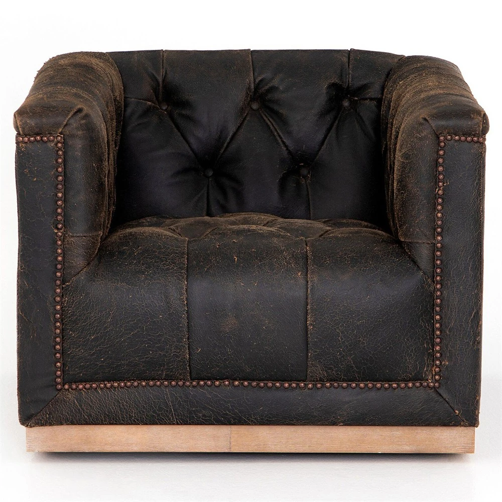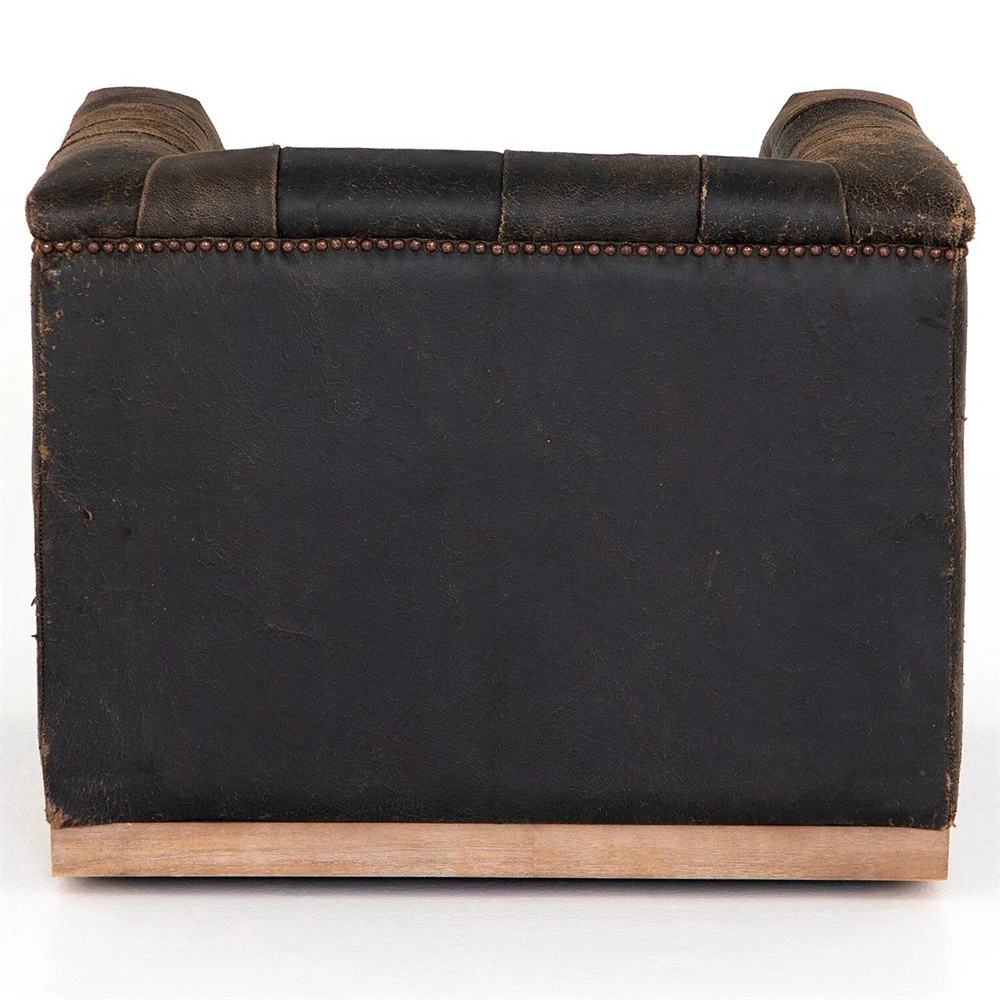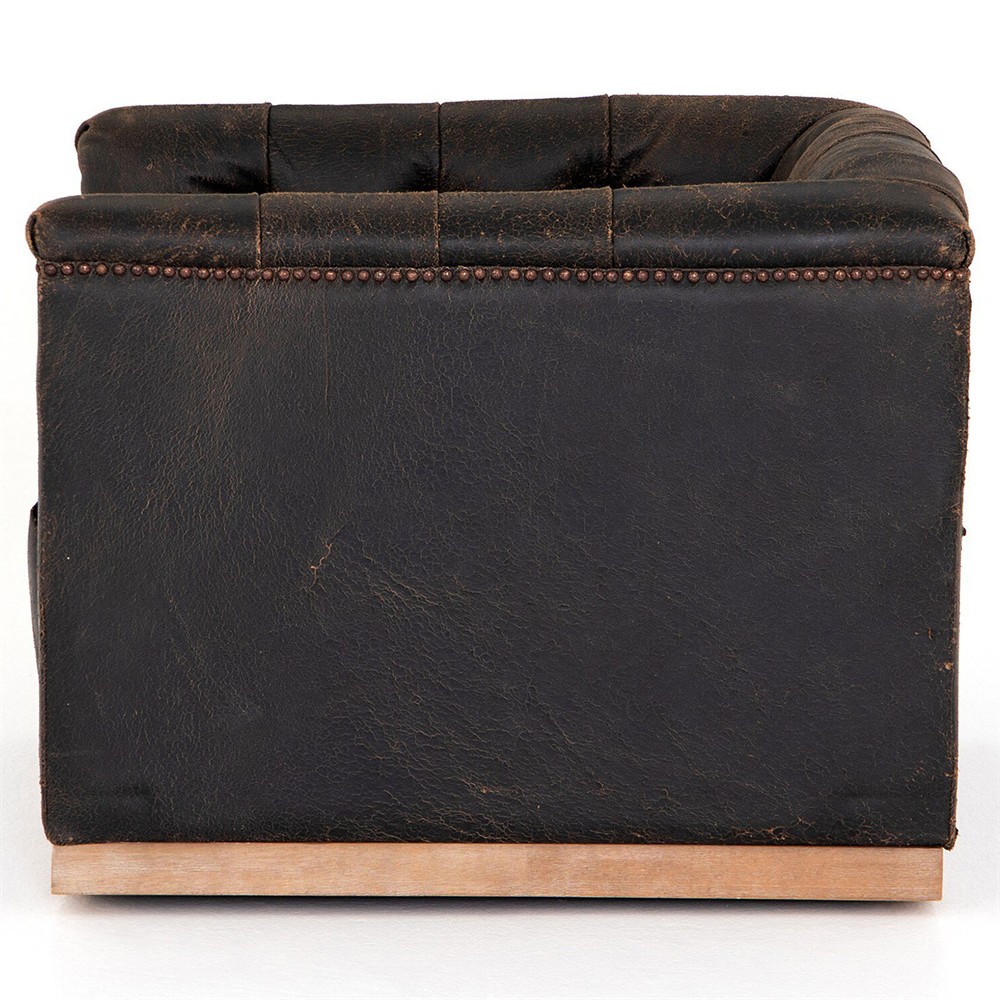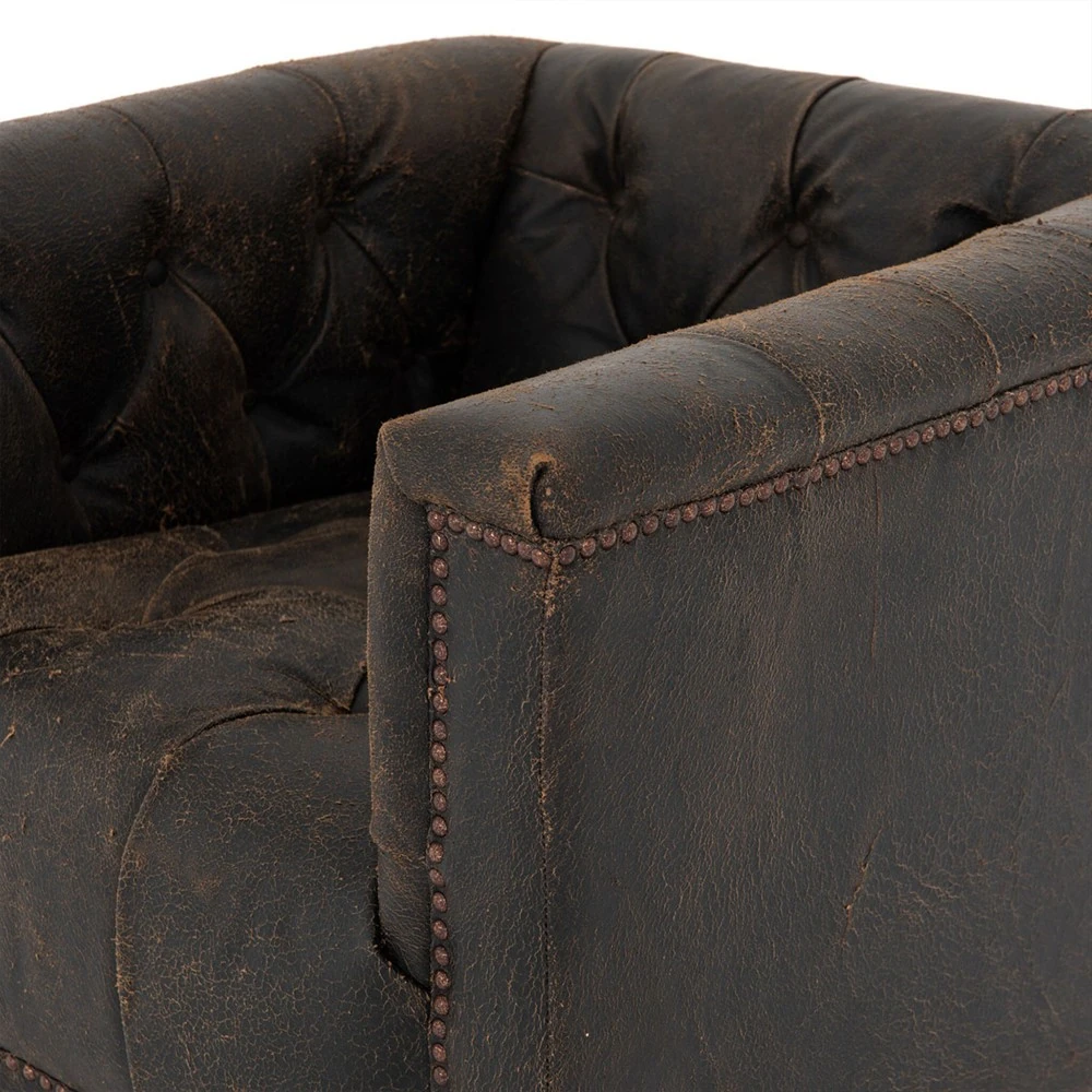 Emmy Rustic Lodge Vintage Black Leather Tufted Nailhead Trim Swivel Club Chair