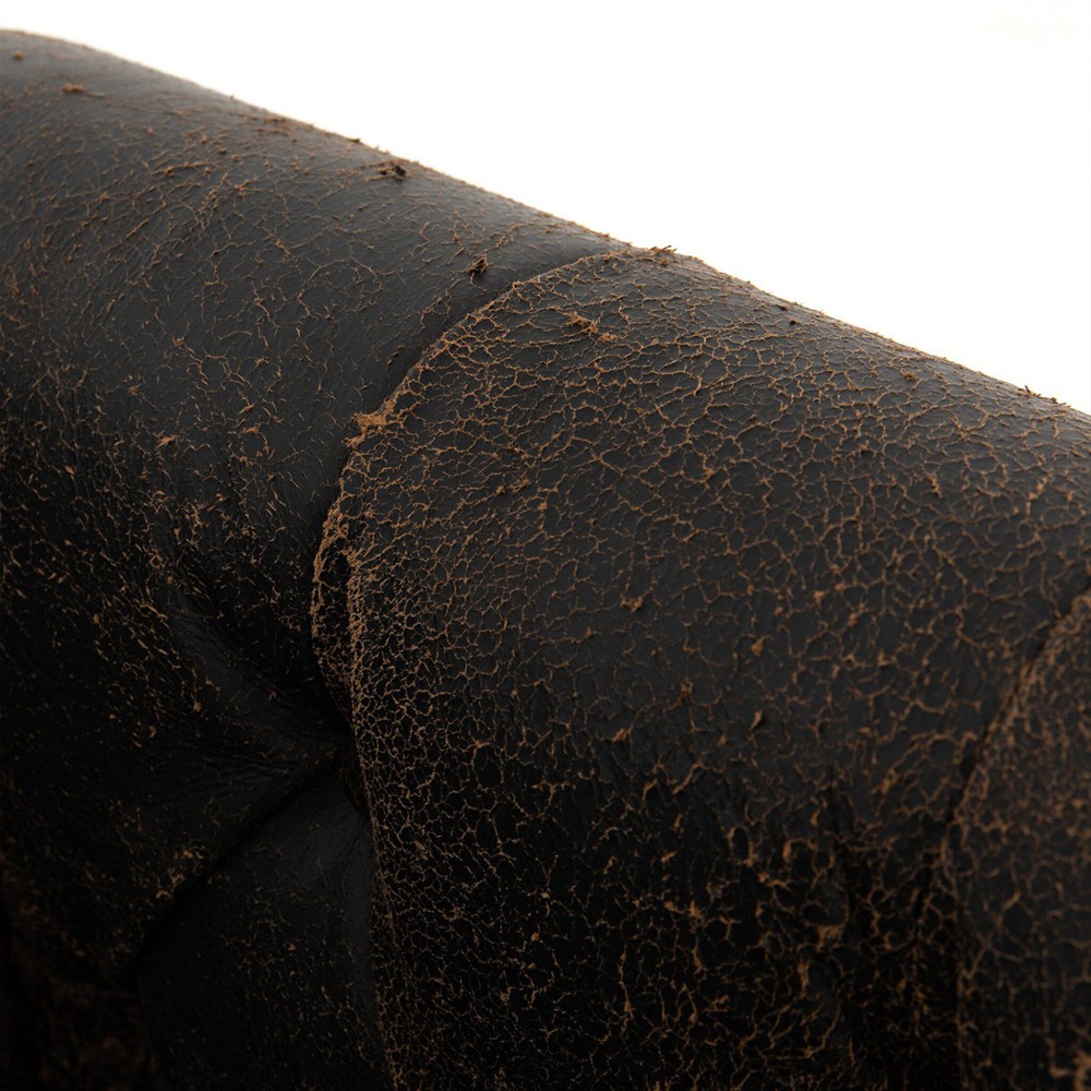 • Upholstered in "Destroyed Black" top grain leather