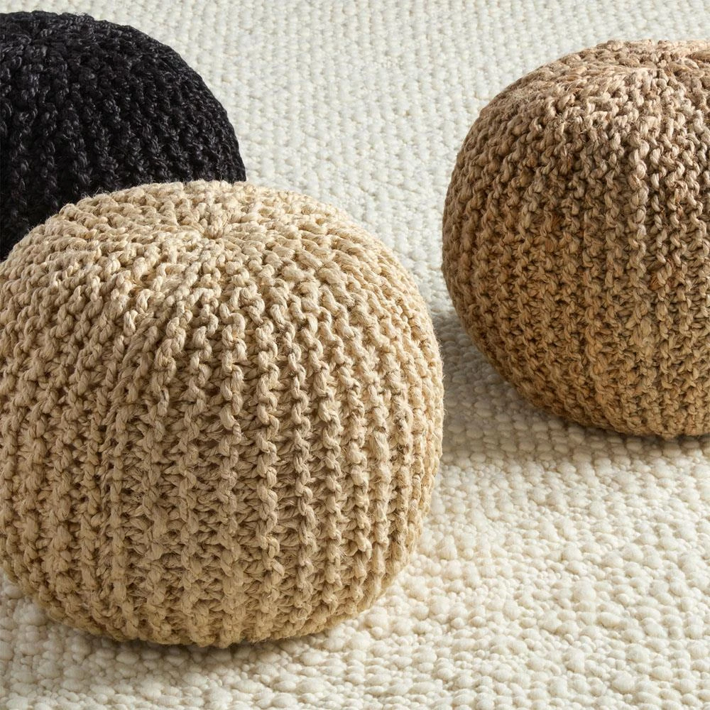 • Easton Coastal Beach Beige Woven Jute Round Pouf|Kathy Kuo Home