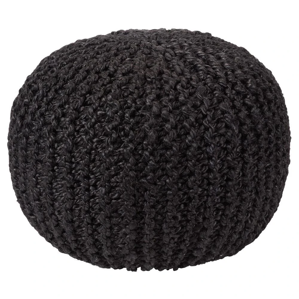 Azene Coastal Beach Black Woven Jute Round Pouf