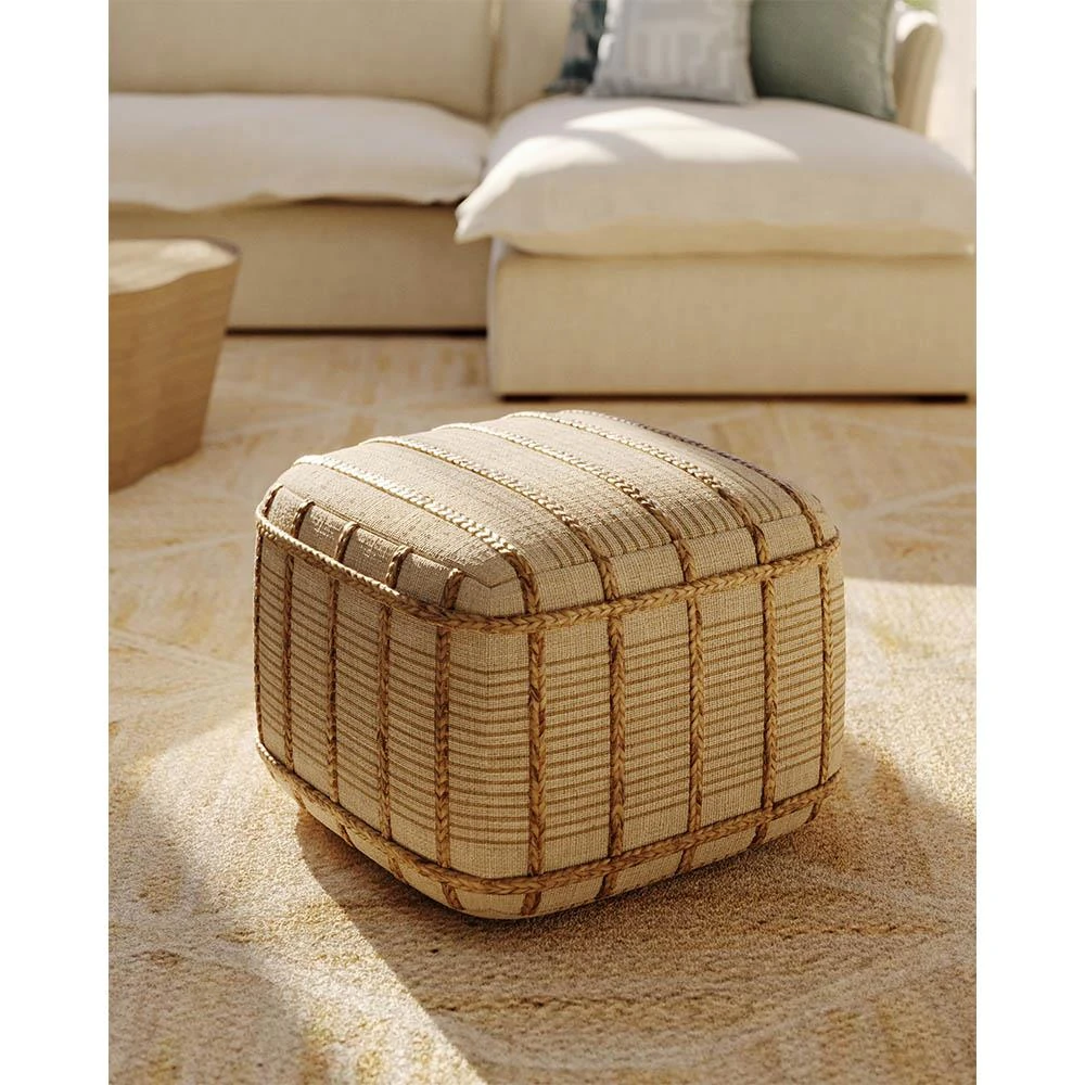 • Sangam Coastal Beige Jute Square Pouf|Kathy Kuo Home