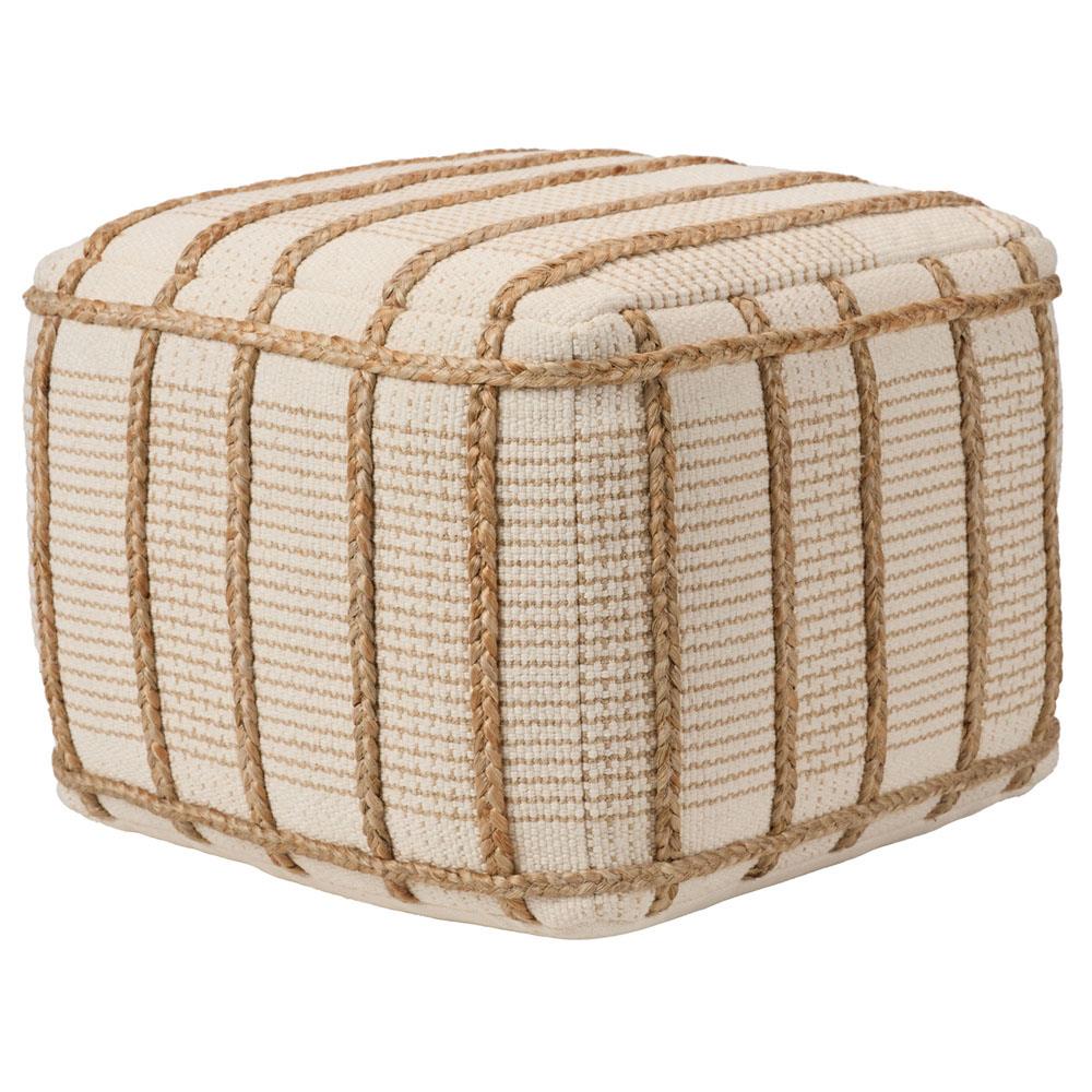 Remsen Coastal Beach Cream Cotton Braided Jute Square Pouf