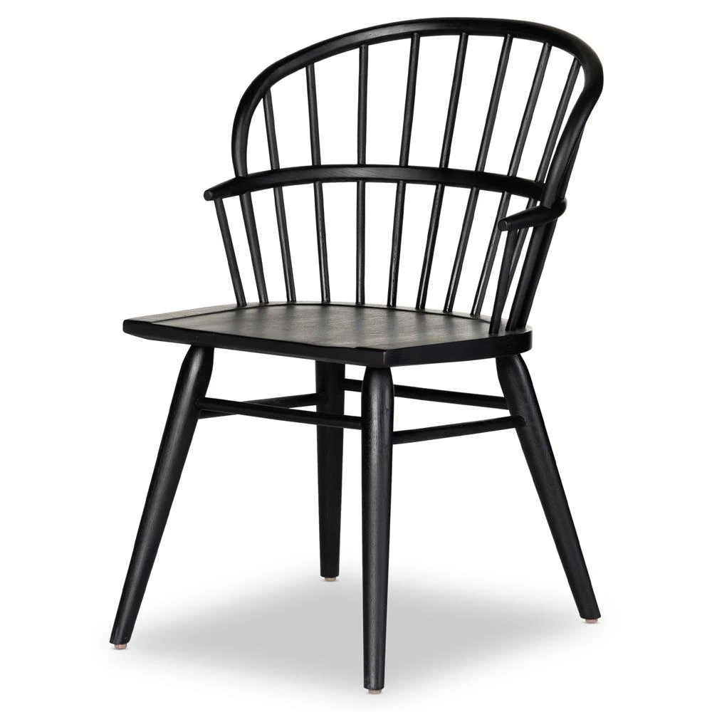 Lara French Classic Black Oak Wood Windsor Dining Side Chair