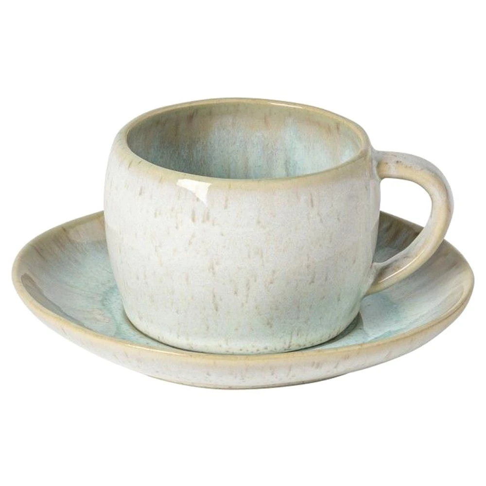 Eivissa Coastal Beach Blue Stoneware Teacup and Saucer - Set of 4