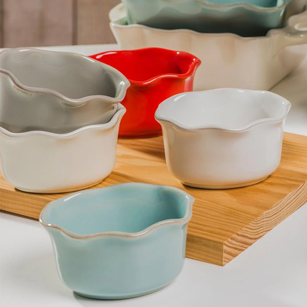 • Fine stoneware. Ruffled-shaped edge